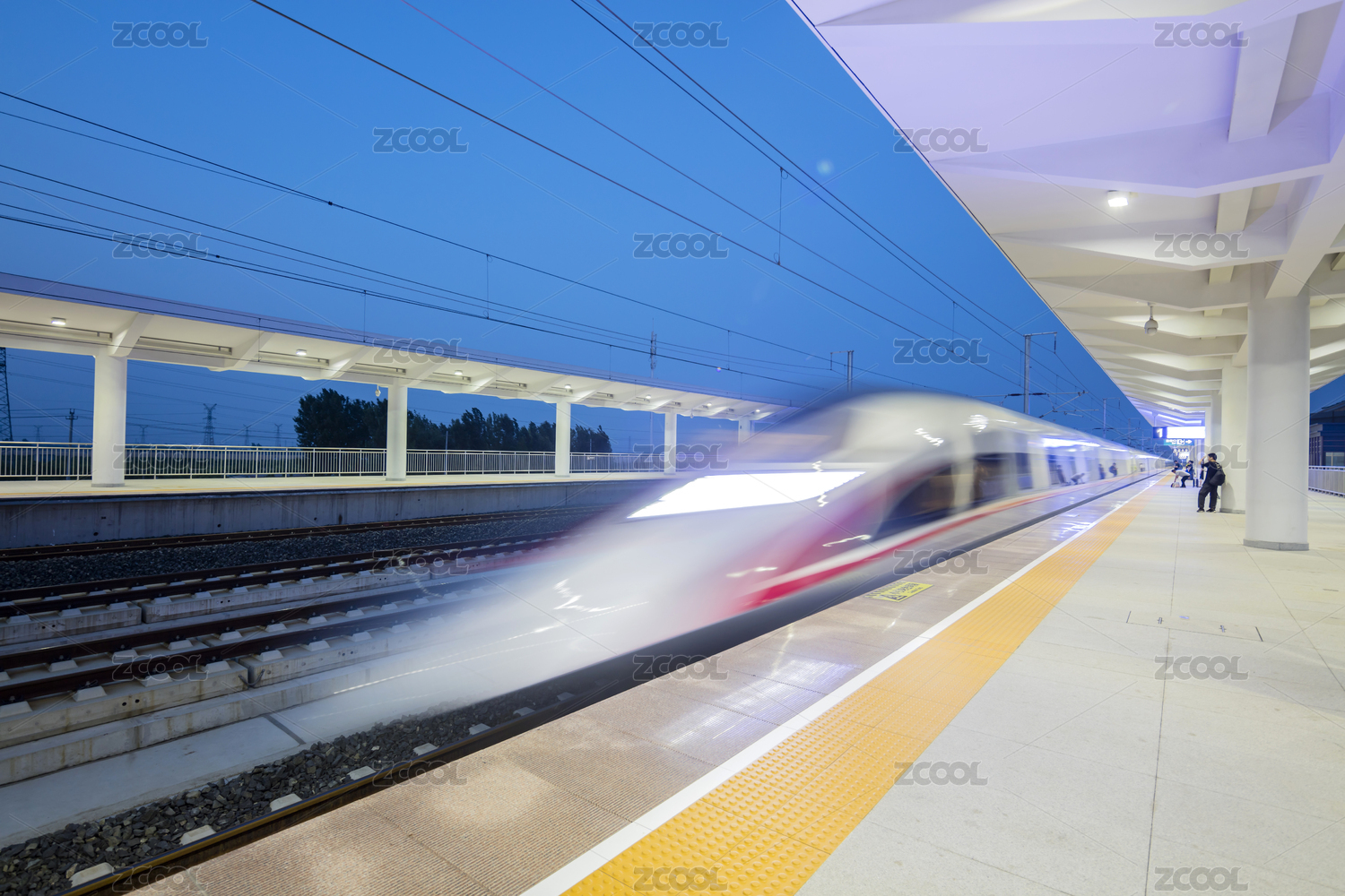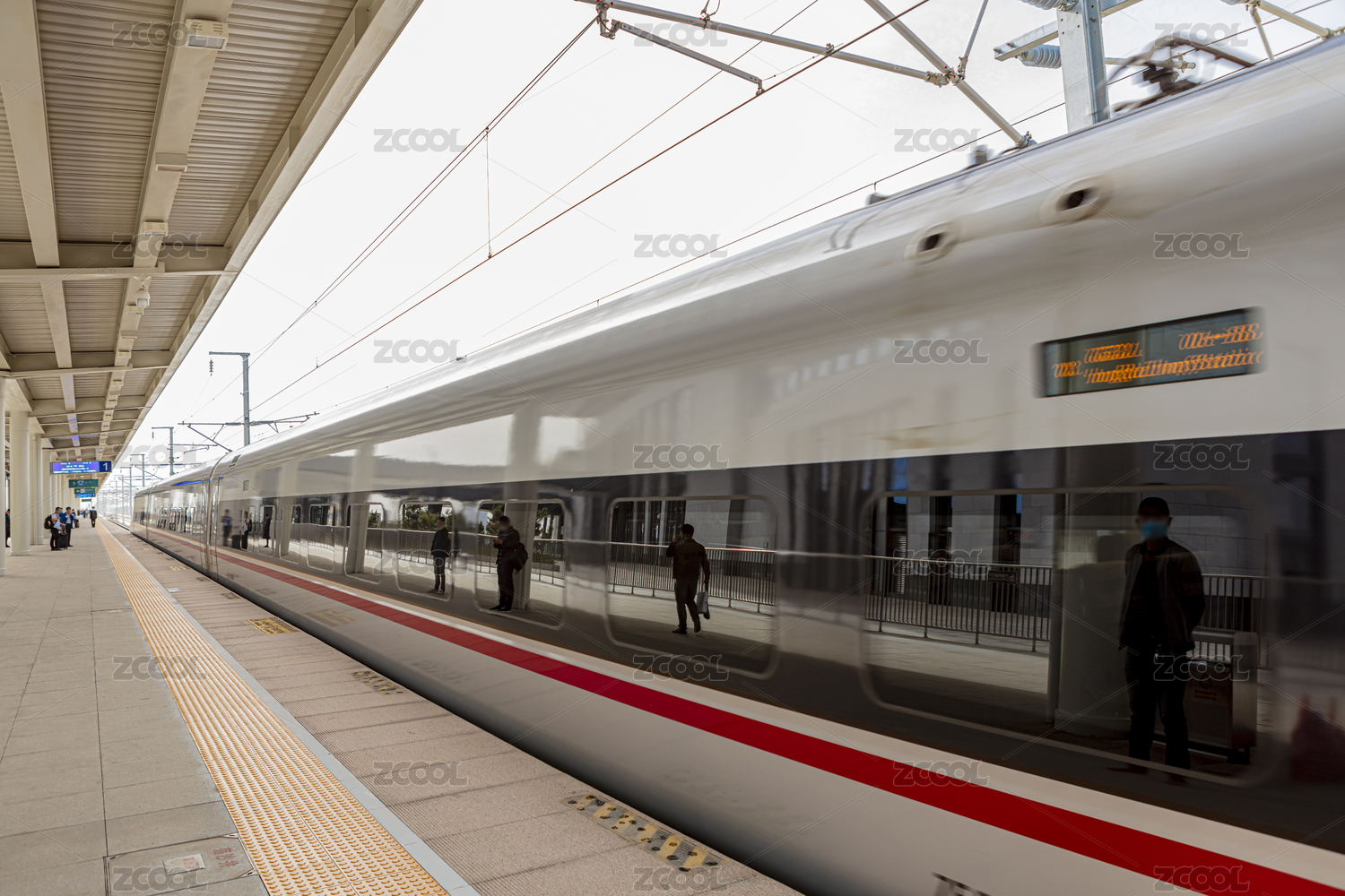 高铁站正在急速通过的动车