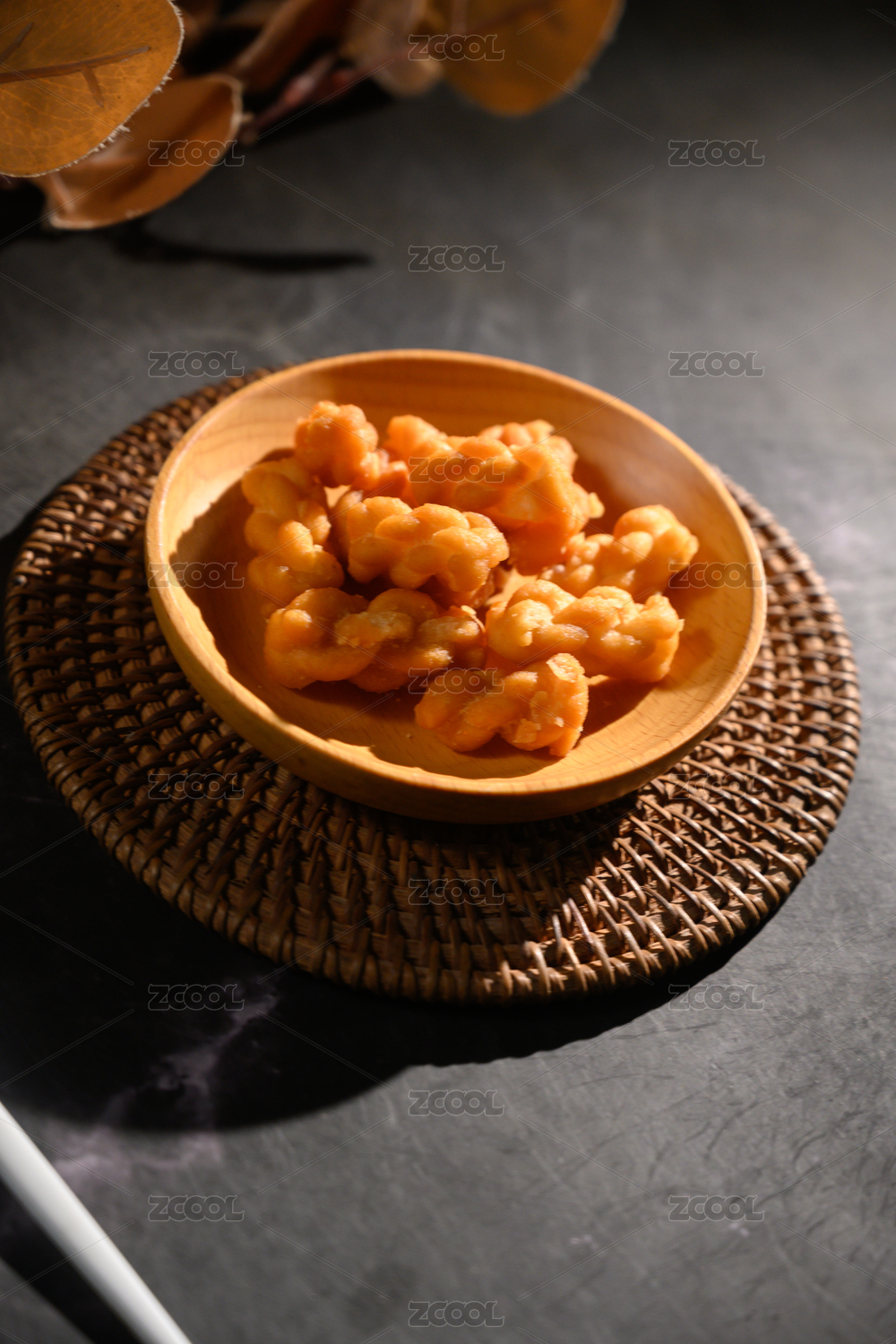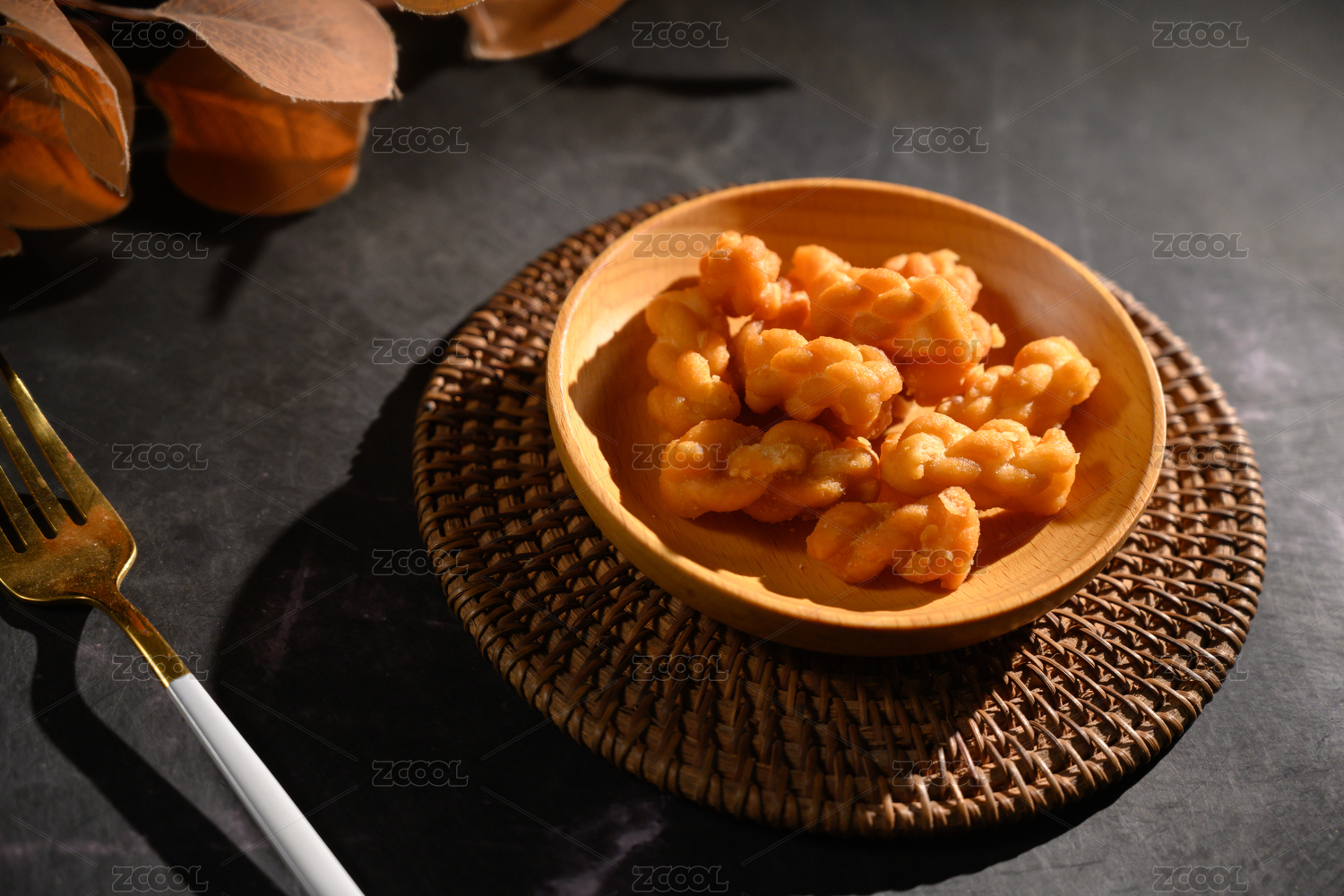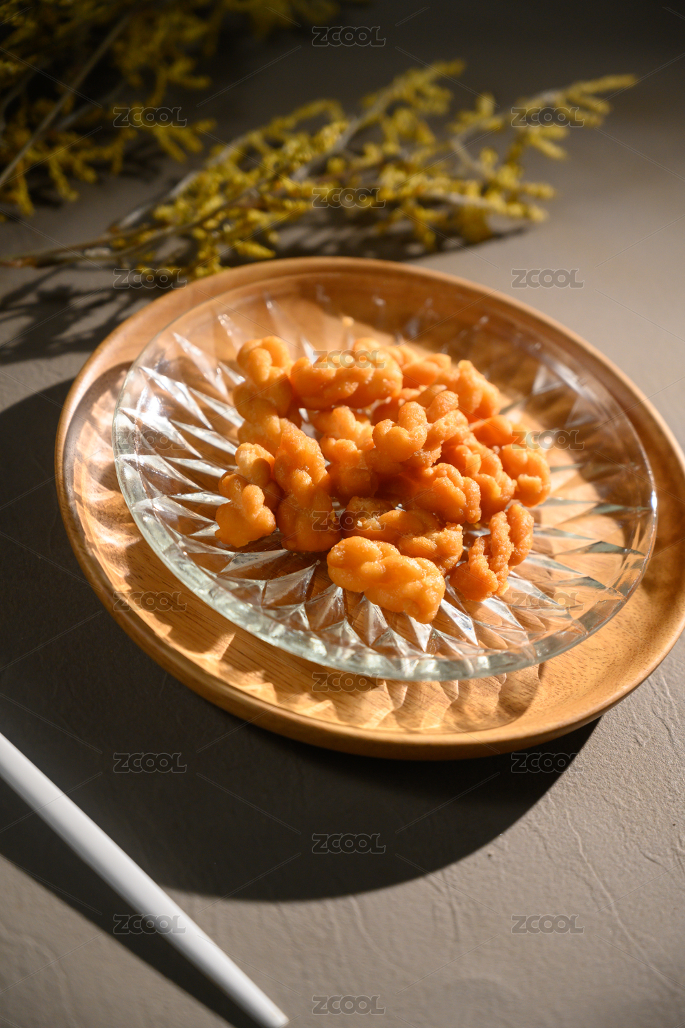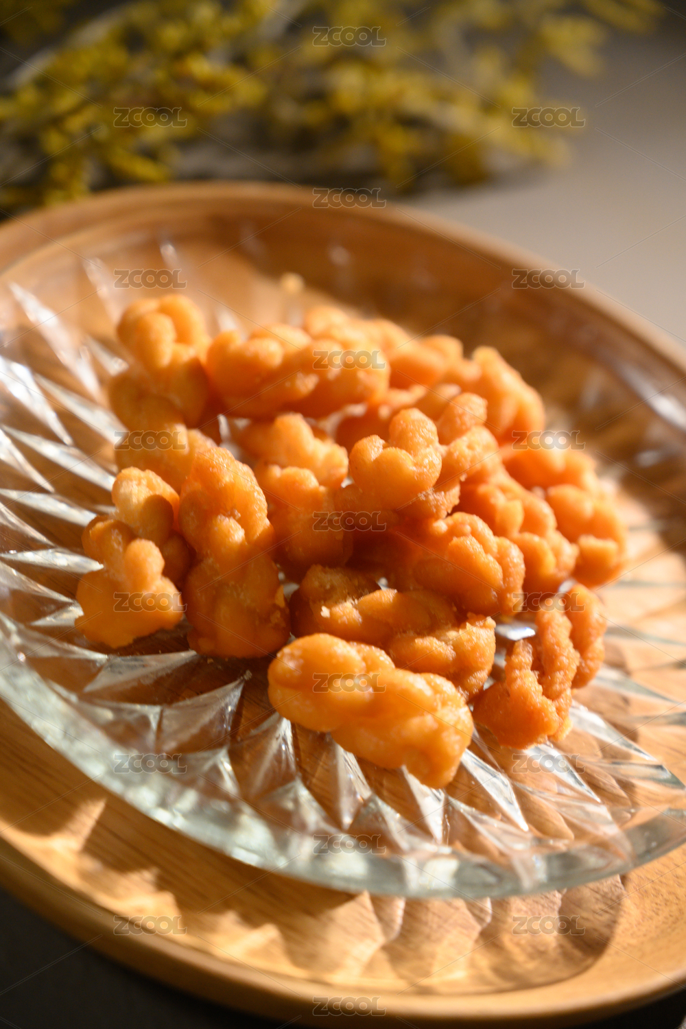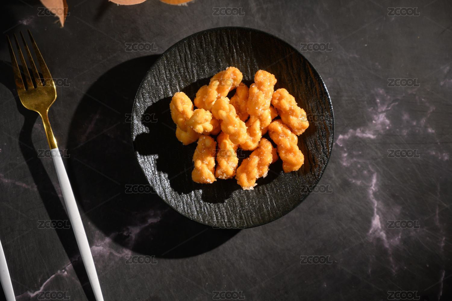 桌面上的盘子里的美味可口的糖麻花