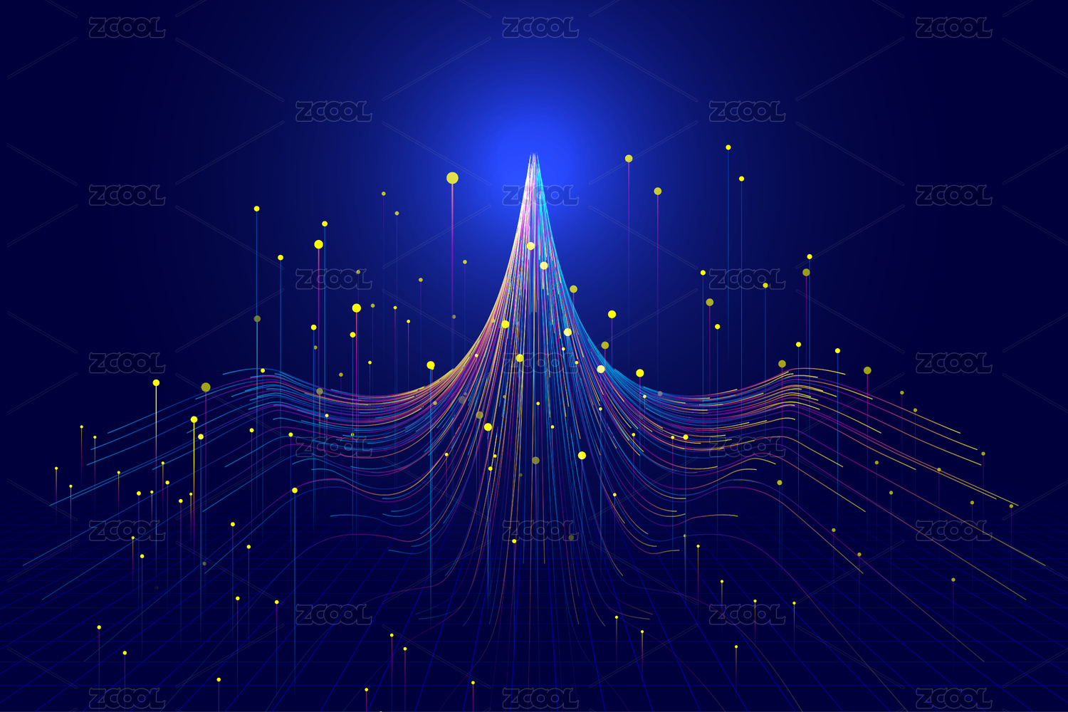 点线组成状如飞翔的老鹰与升起射线科技背景