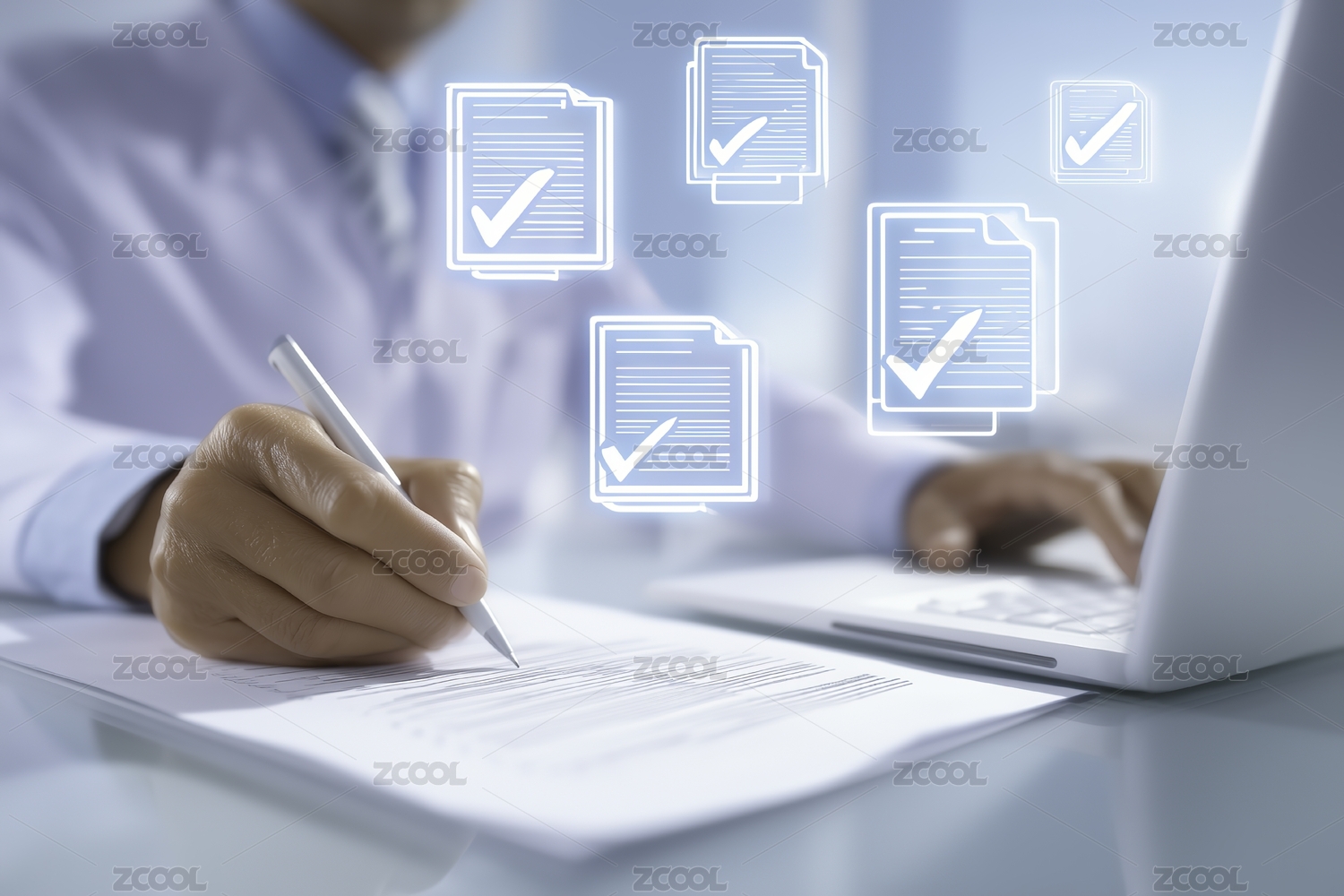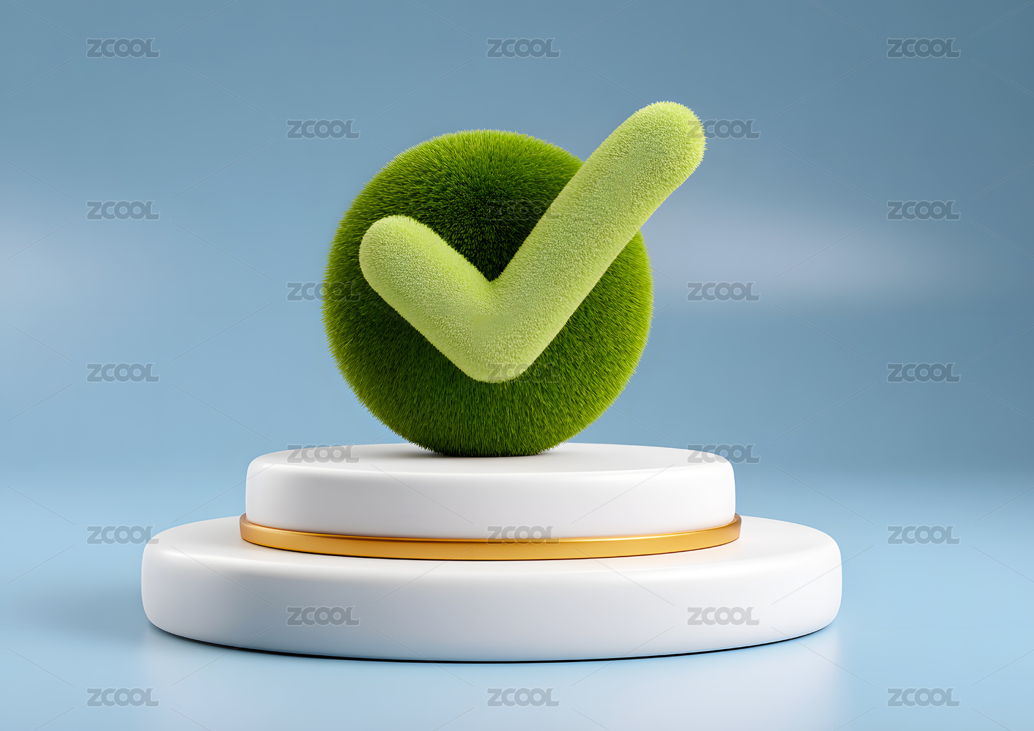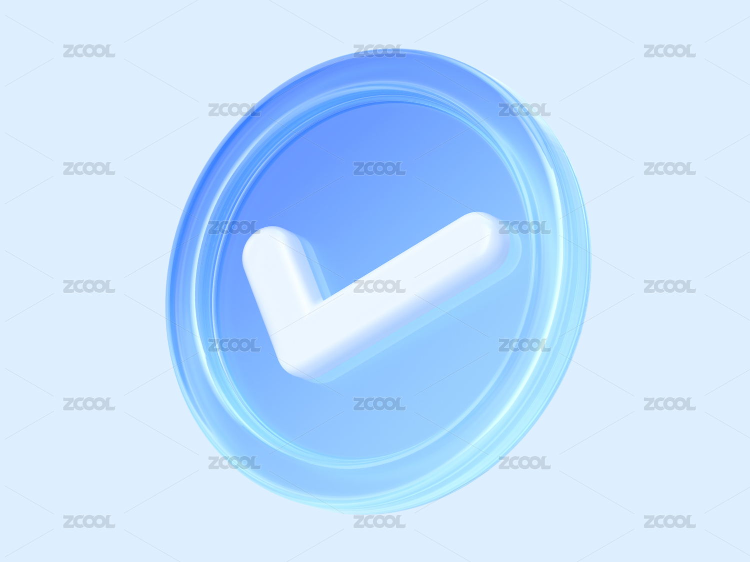 科技蓝白透光打勾正确完成按钮智能3D图标