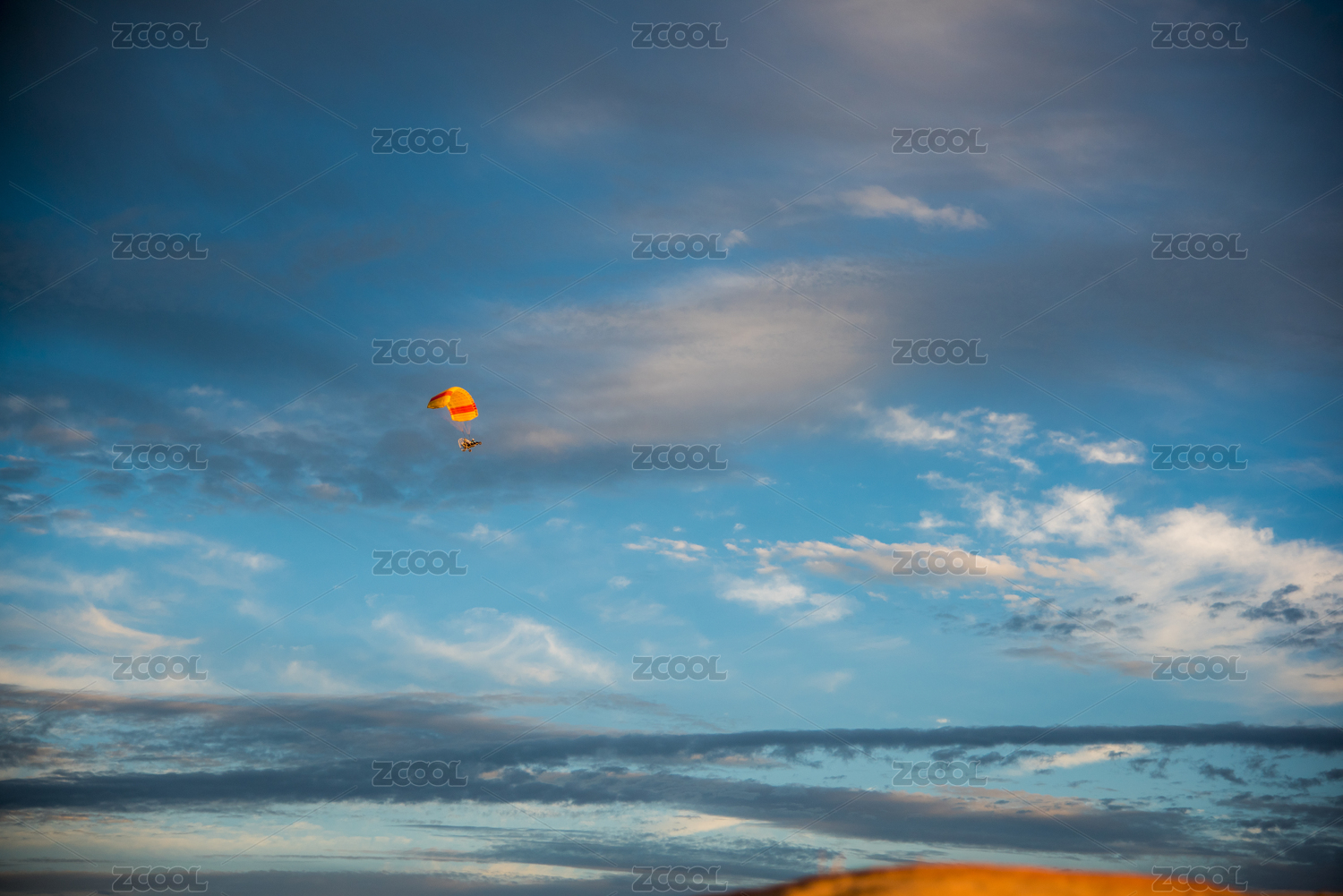 滑翔伞落日晚霞