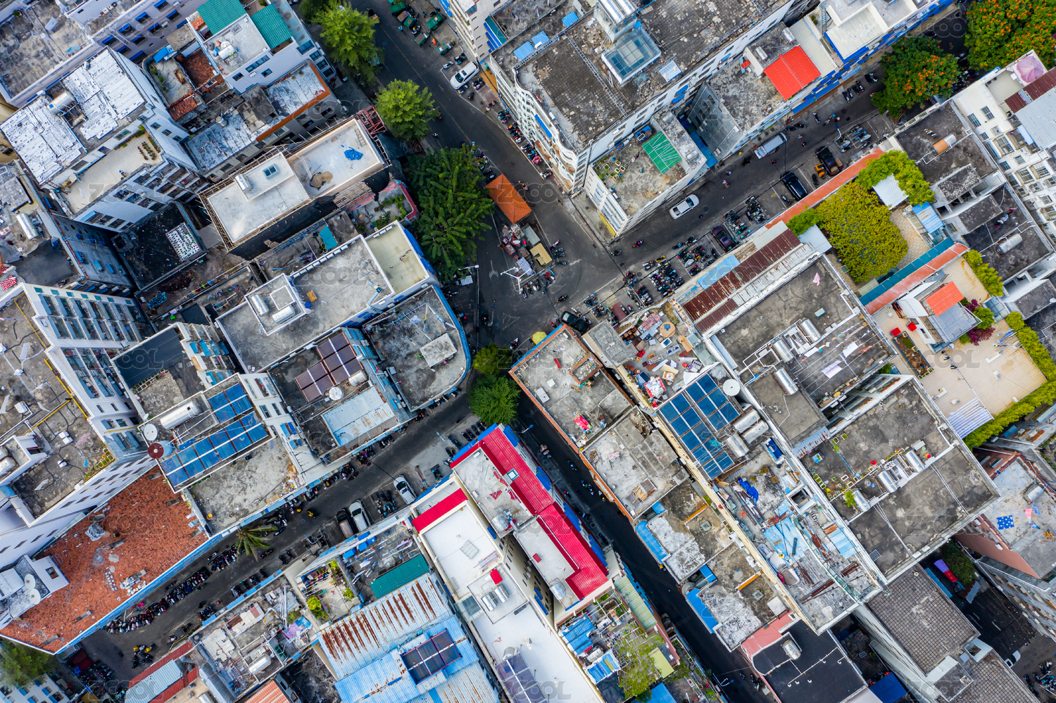 航拍海南三亚港门村都市村庄城中村自建房屋