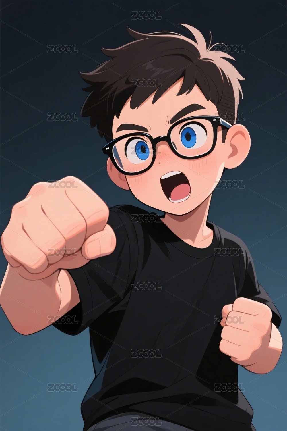男孩动态拳法插画