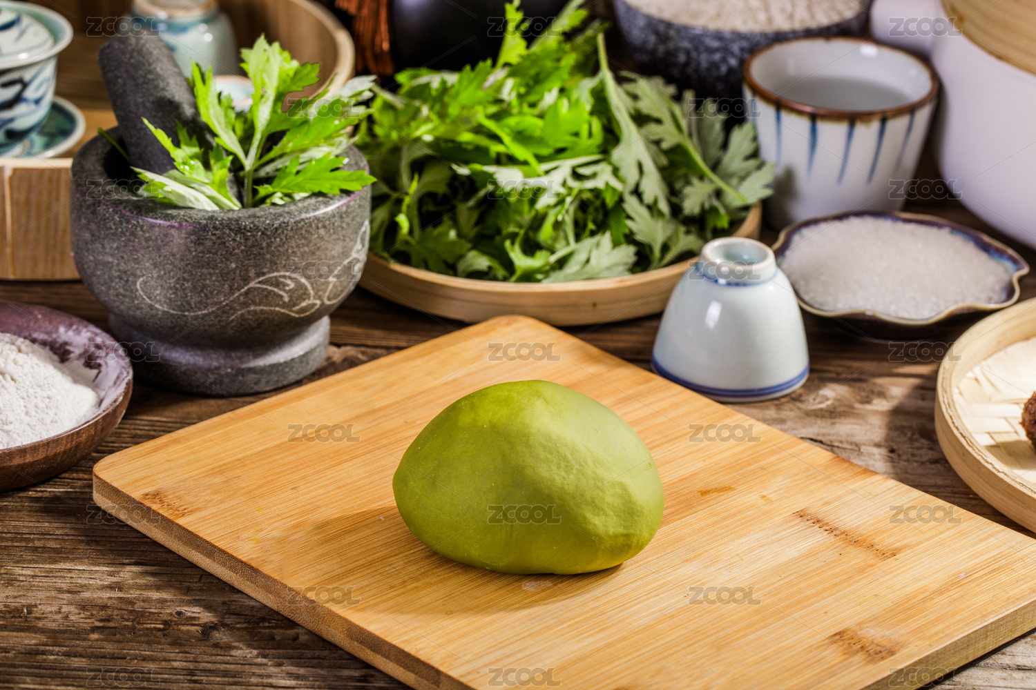 正在发酵的绿色面团