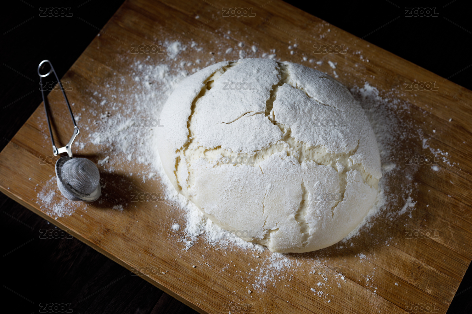 放在木板上已发酵有裂纹的生面团