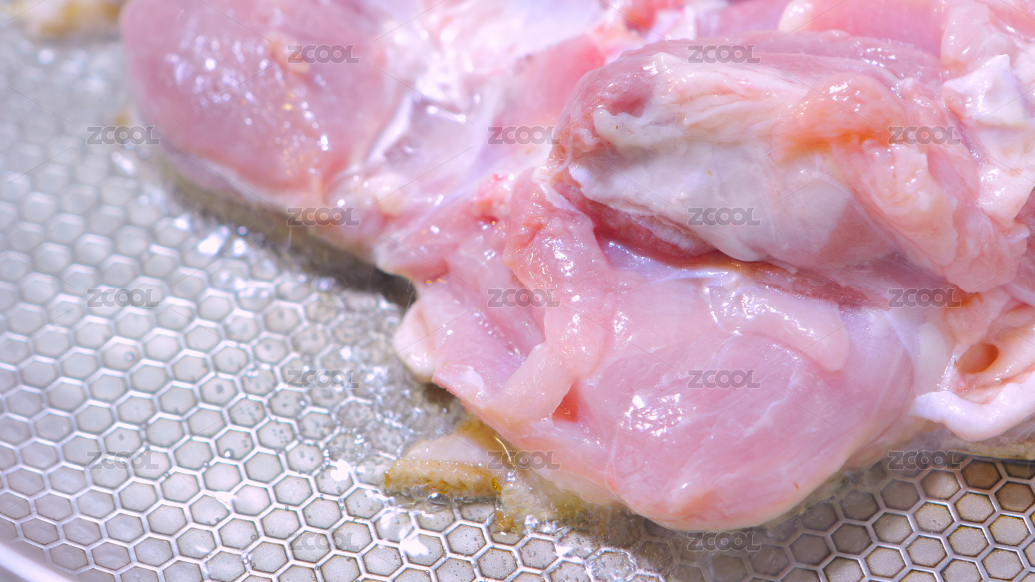 锅子里正煎着嫩煎鸡肉腿肉