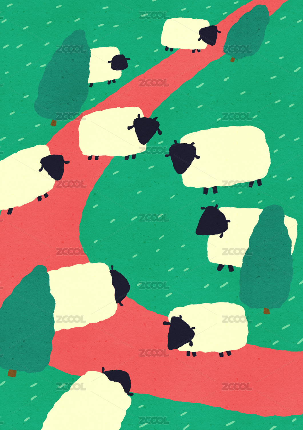 白羊座之穿着潮流服饰的绵羊卡通形象设计