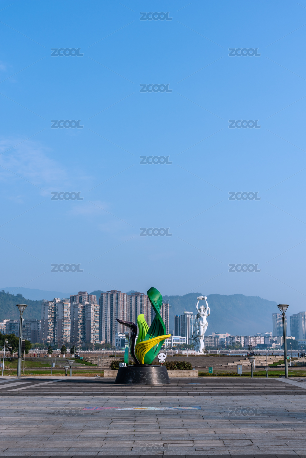 四川雅安女娲补天雕塑和女娲广场白昼航拍