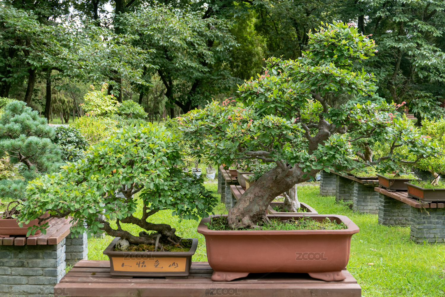 中国风格的盆栽景观 老桩盘绕