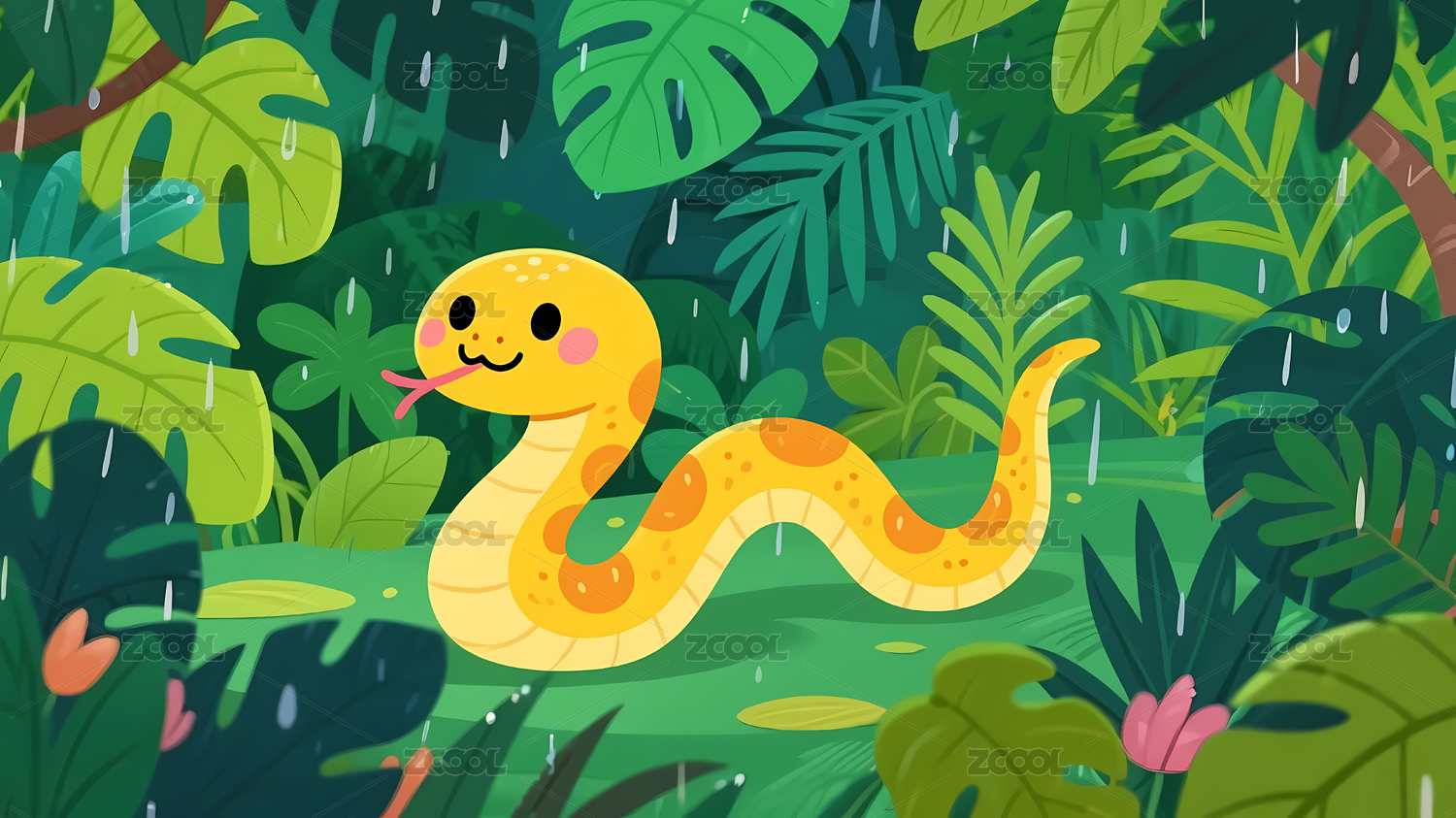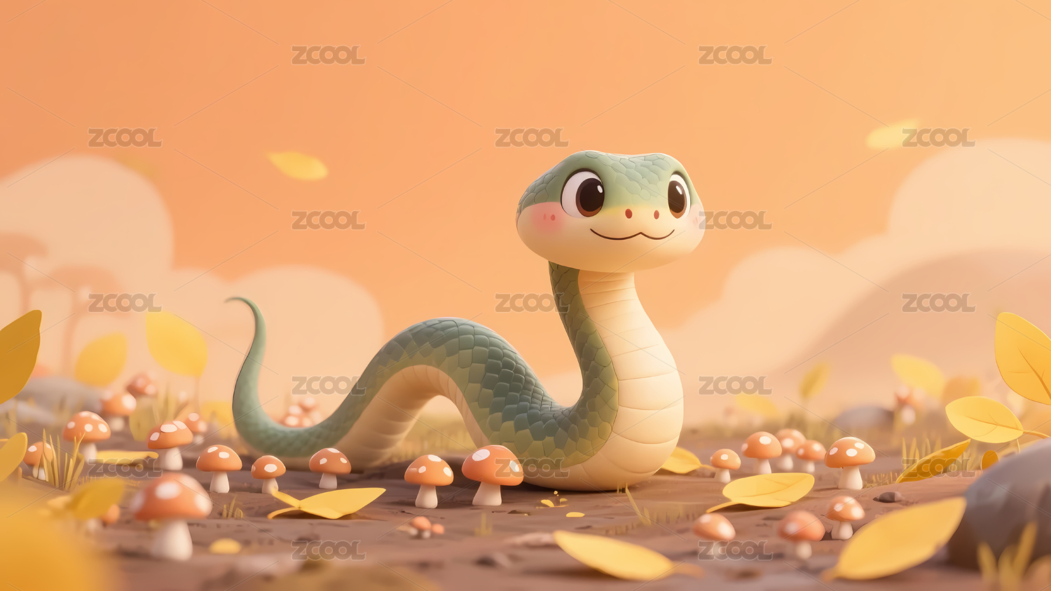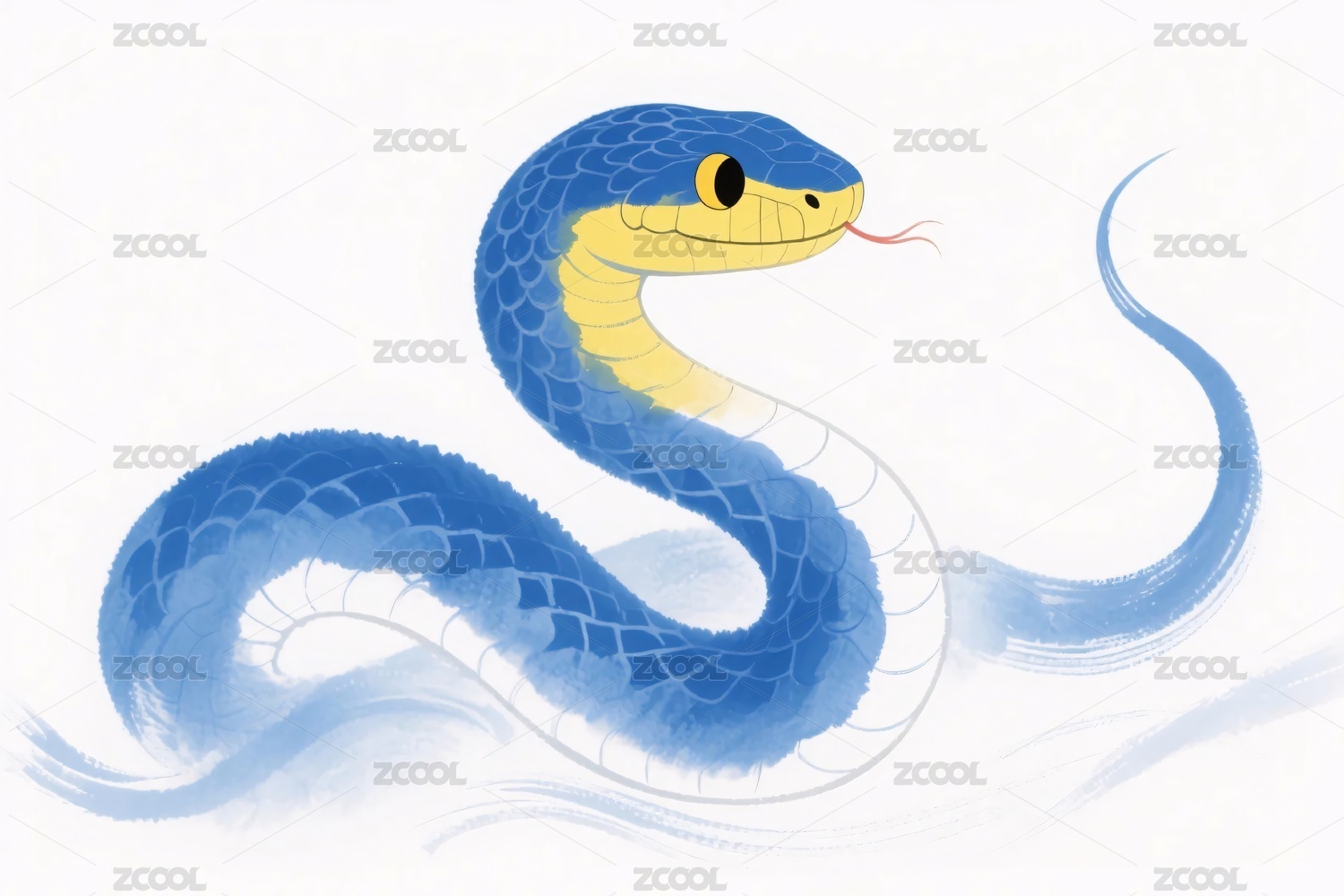 中国十二生肖之萌版小青蛇卡通矢量元素插画
