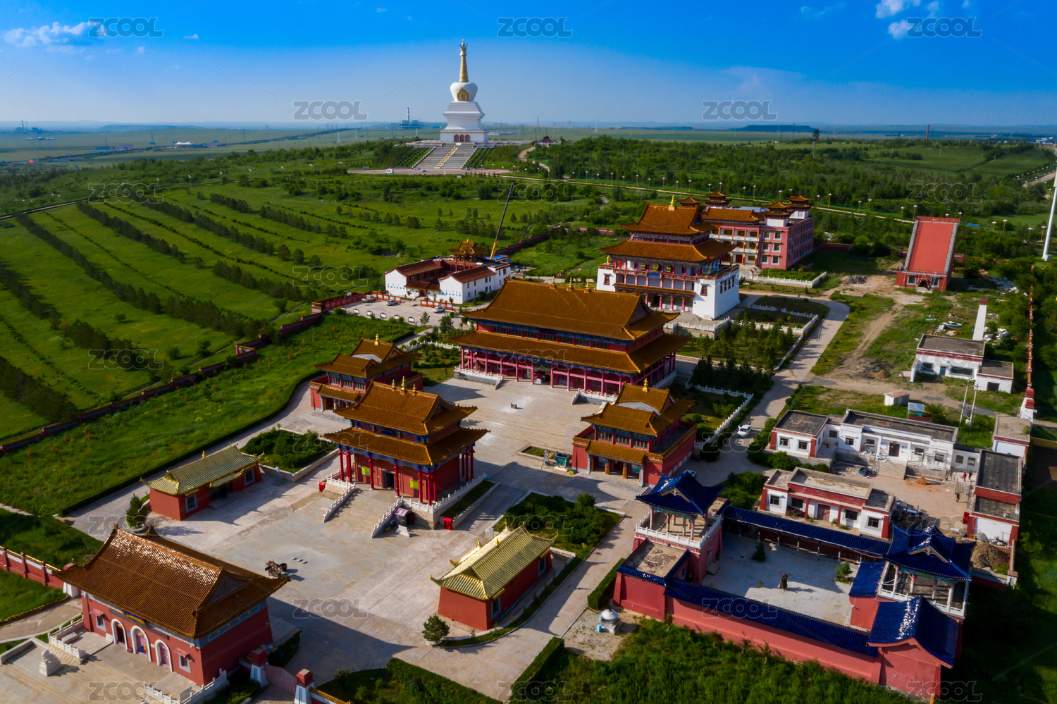 内蒙古海拉尔两河圣山寺庙航拍景观