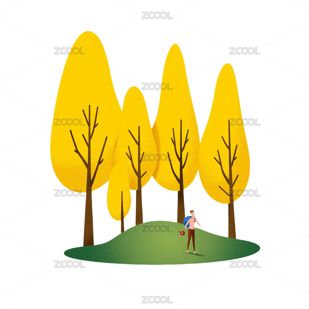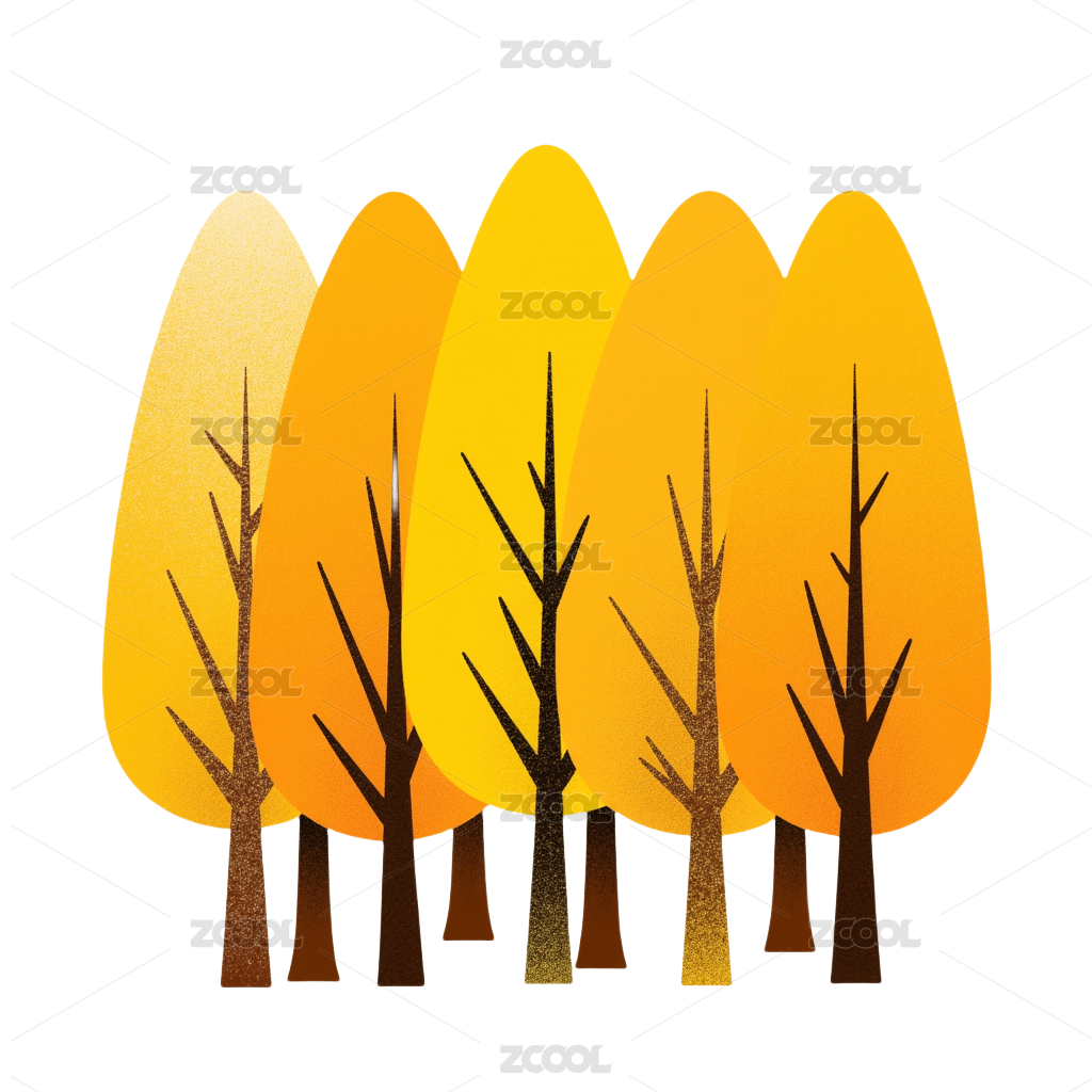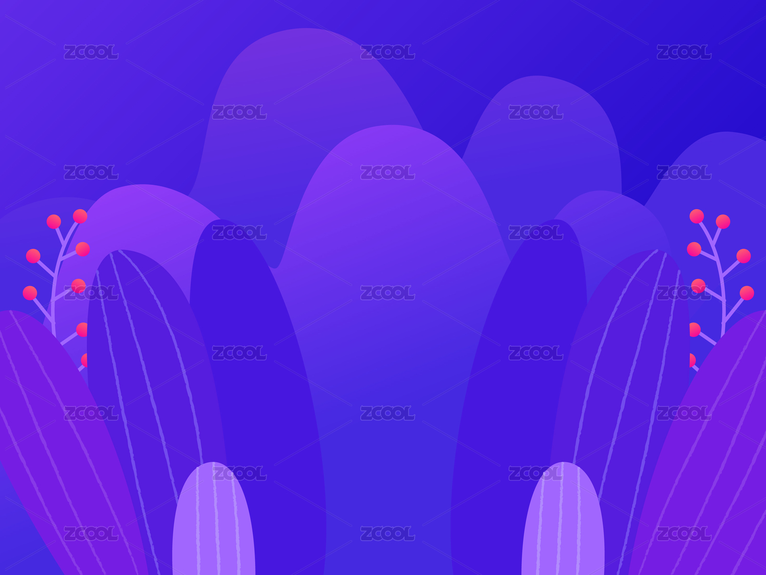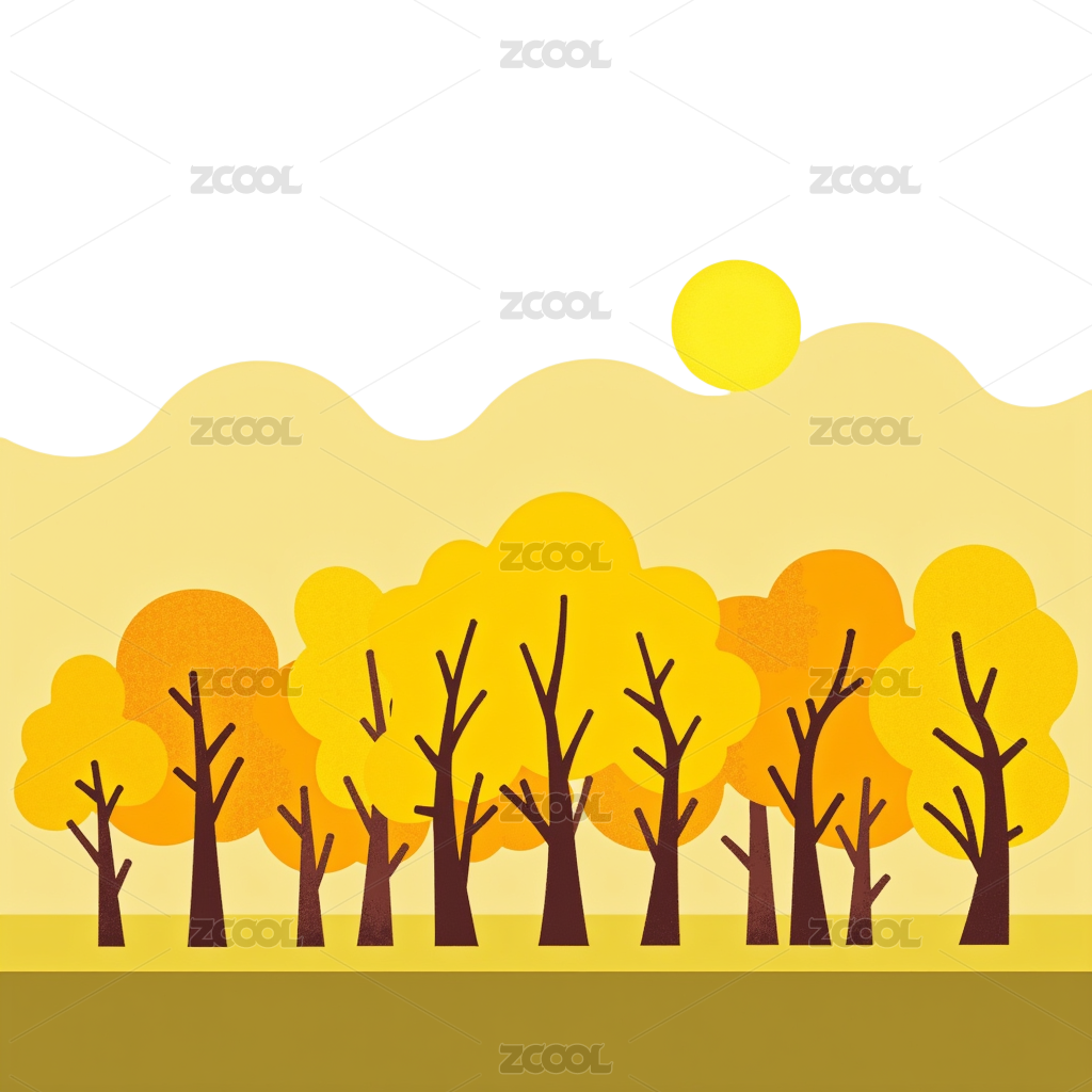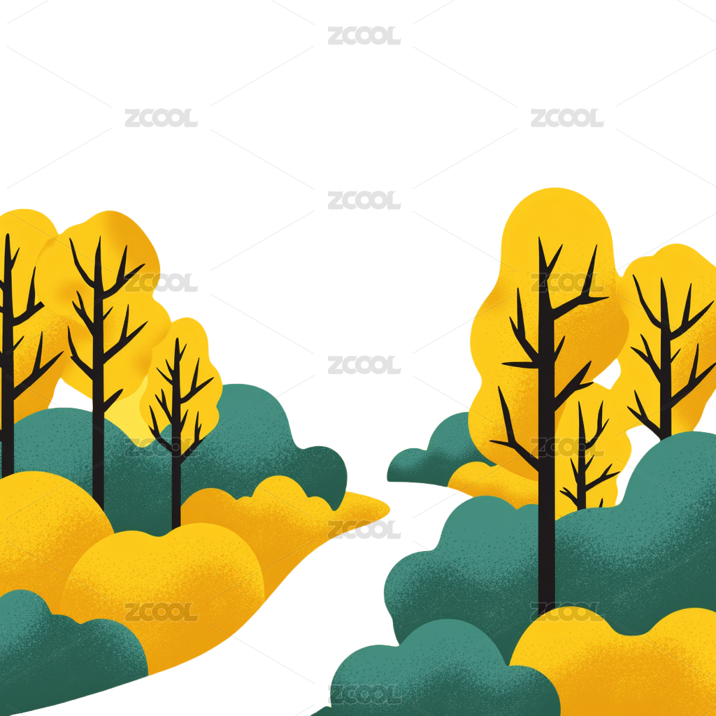 渐变色的小森林下有一条河流缓缓地流动,几只鸟在水里捉鱼插画背景海报