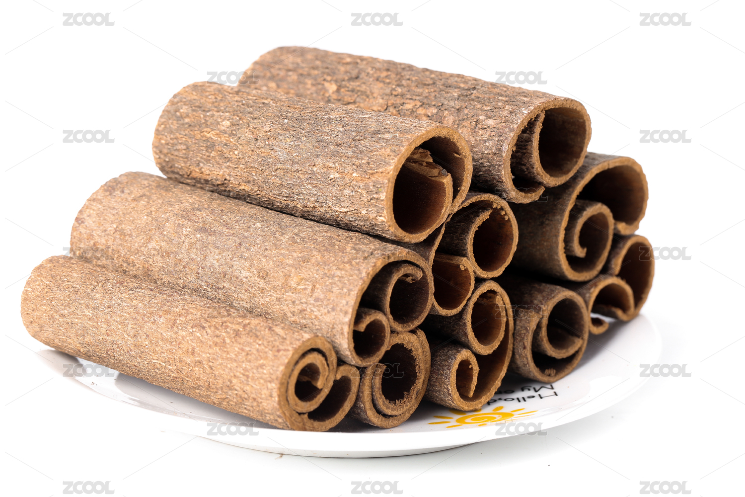 白底上放着一堆无硫桂皮