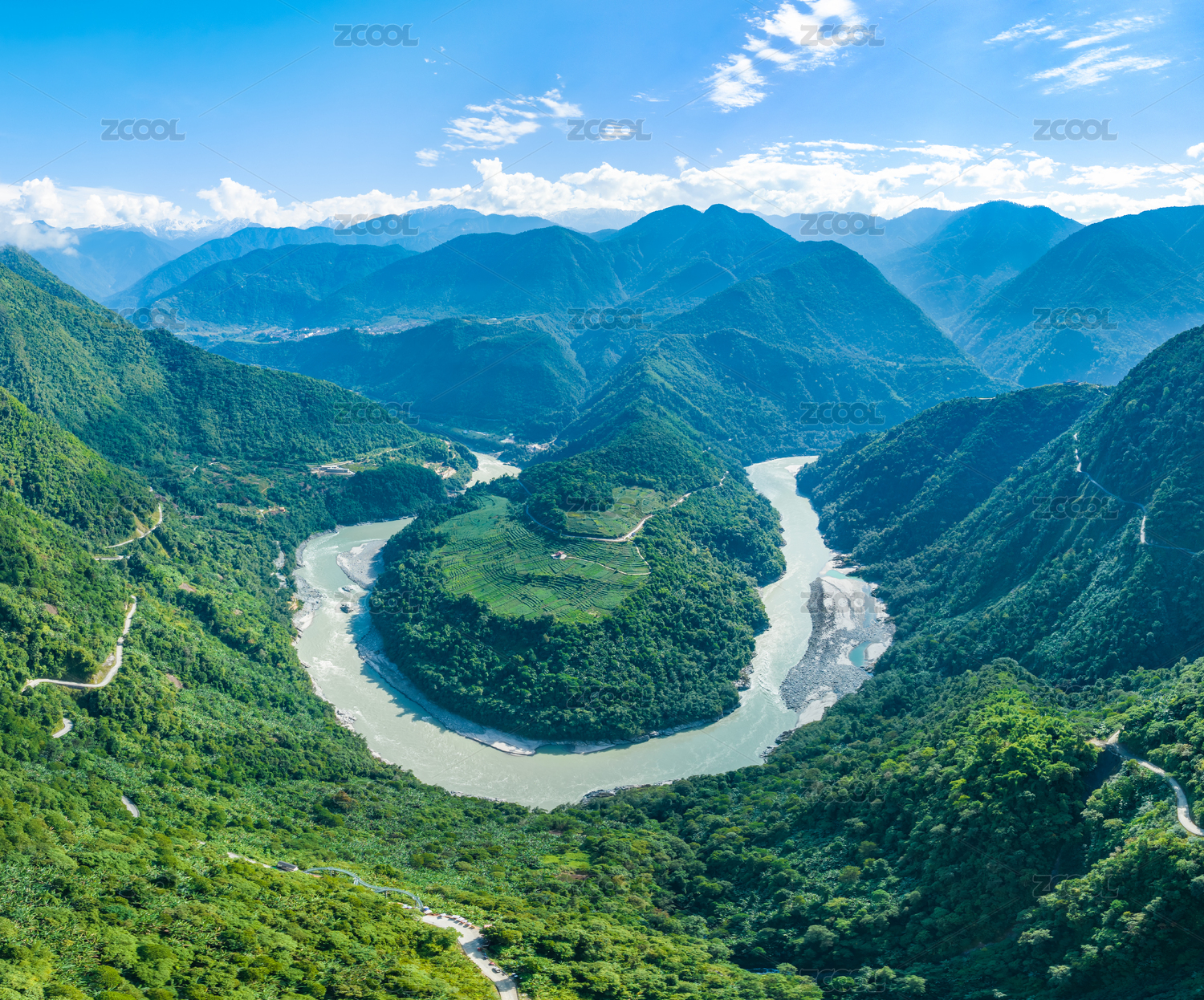 俯瞰金沙江大拐弯月亮湾