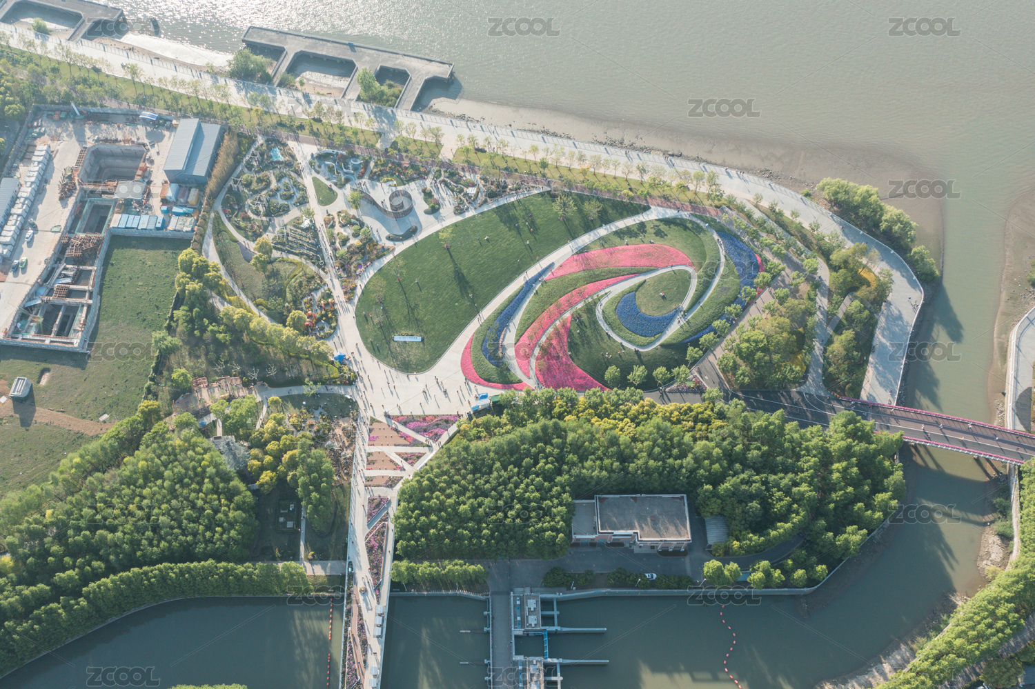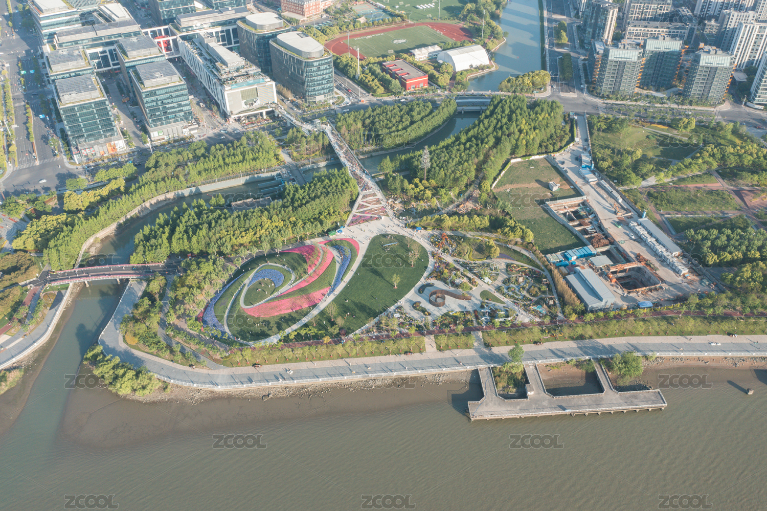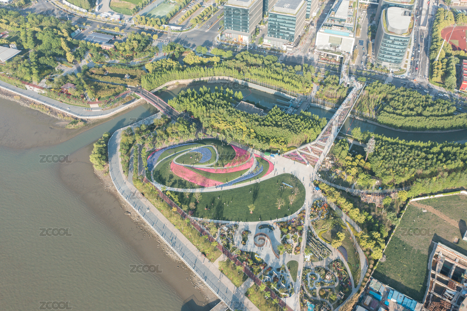 航拍上海前滩休闲公园