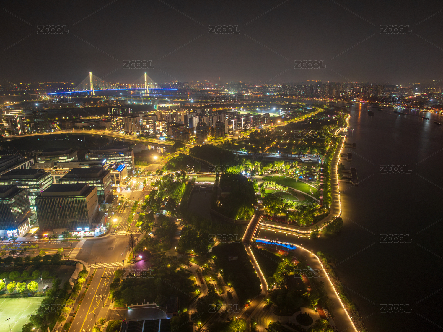 上海浦东新区前滩休闲公园夜景
