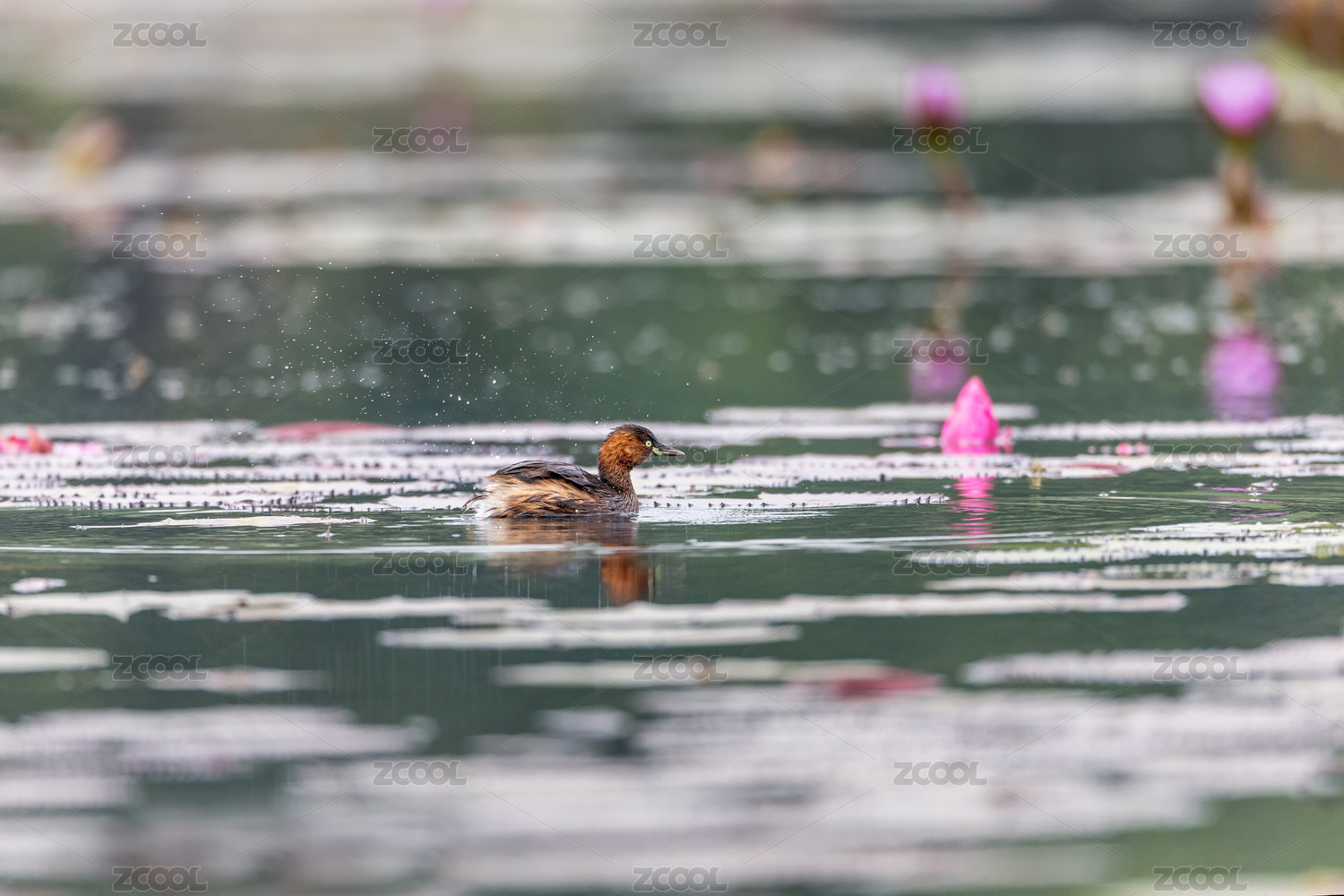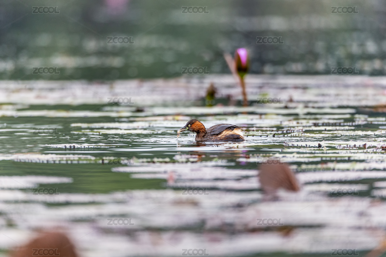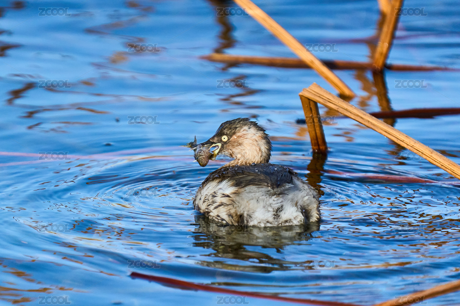 善于水草丛生的湖泊捕食小鱼小虾的小䴙䴘鸟