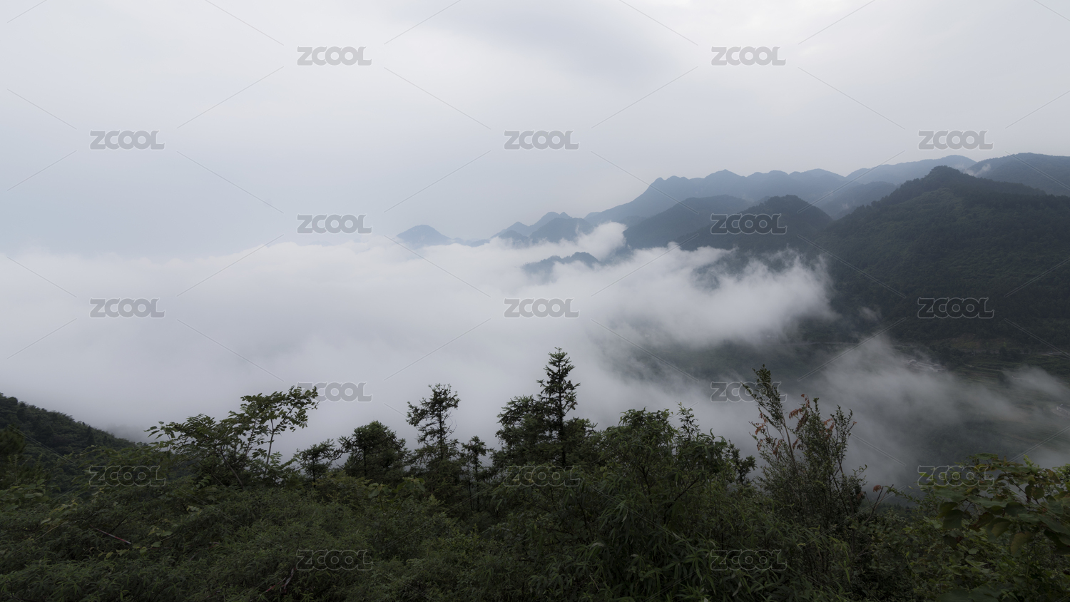 笼罩在晨雾中的重庆万盛黑山谷莽莽群山