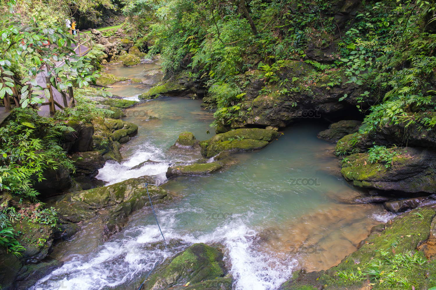 重庆黑山谷的瀑布水流景观