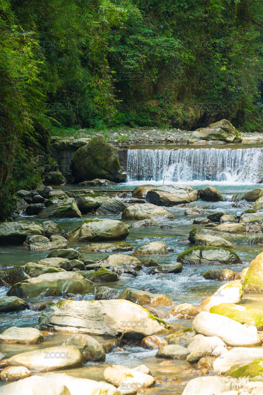 阳光照进夏季的重庆万盛黑山谷小溪