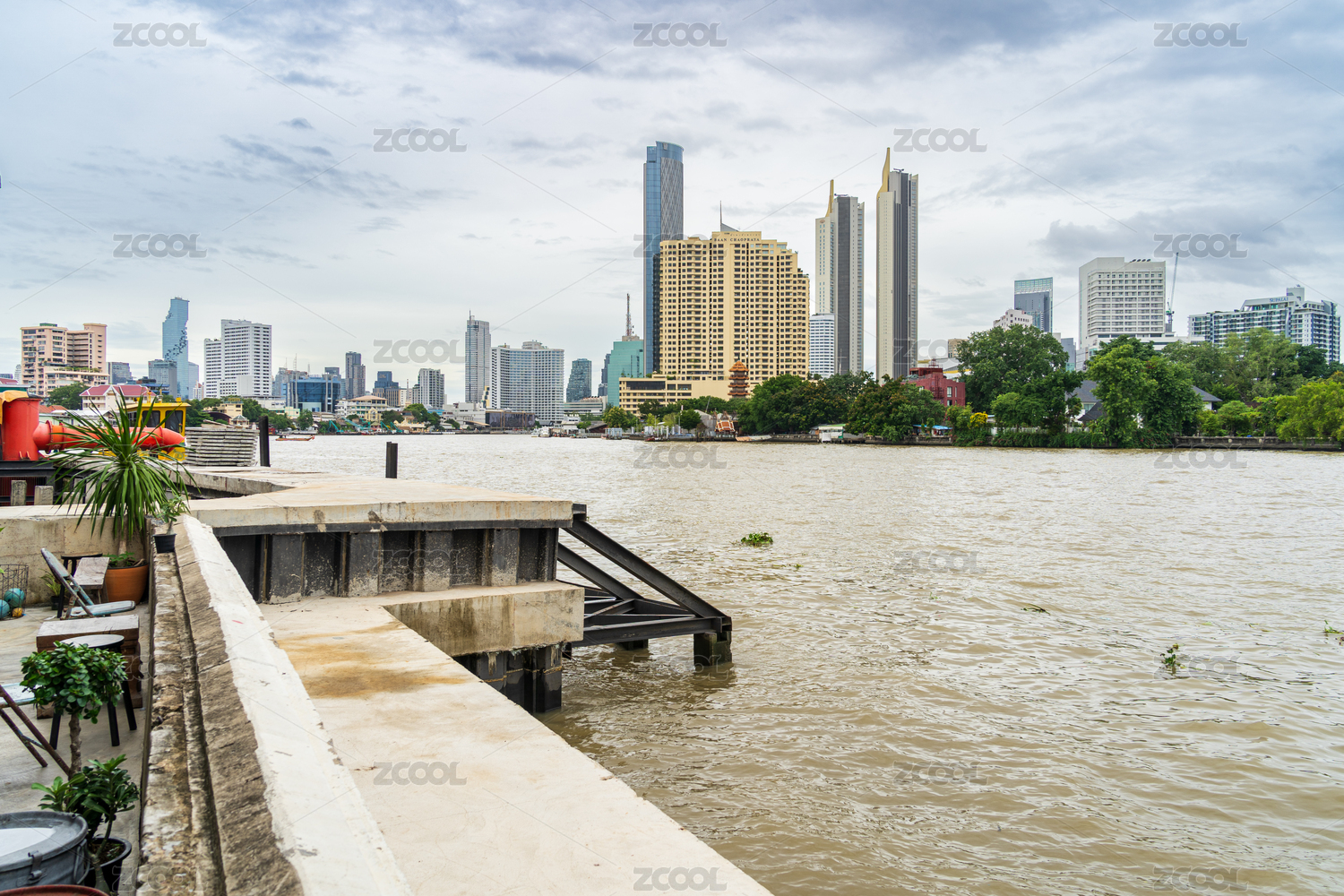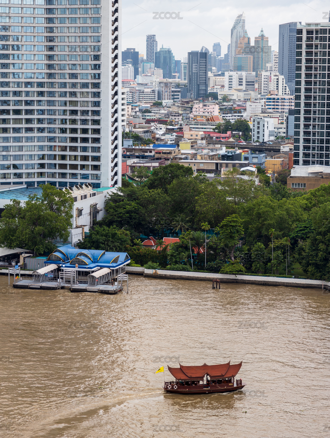 泰国曼谷湄南河畔的现代城市风光与天际线