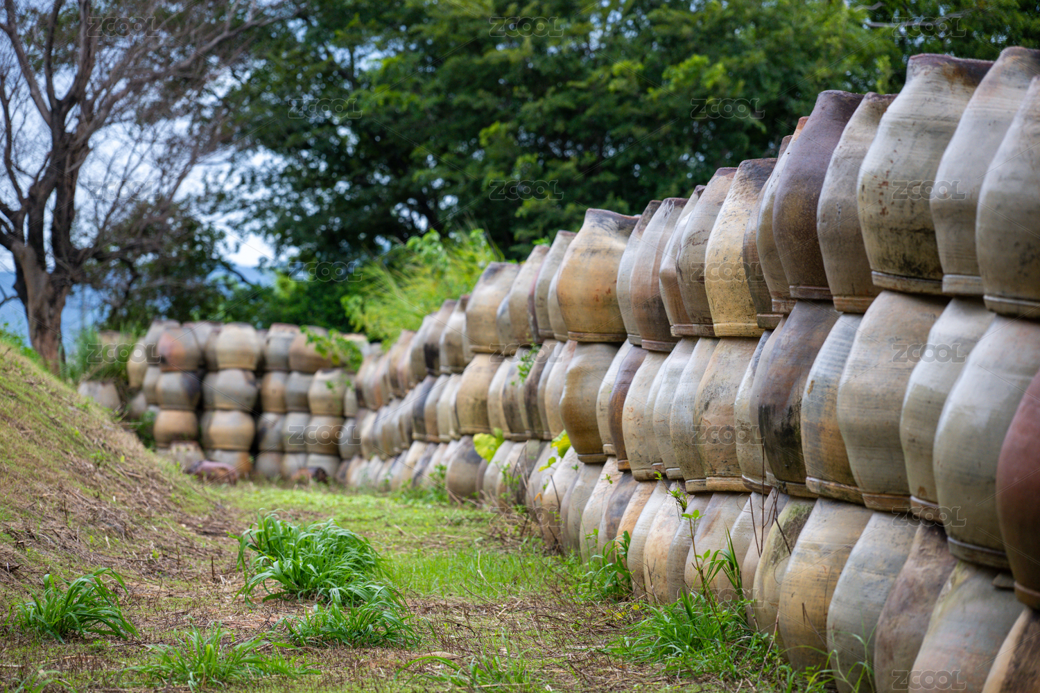 厦门市同安区五龙窑乡村田野中的陶罐墙