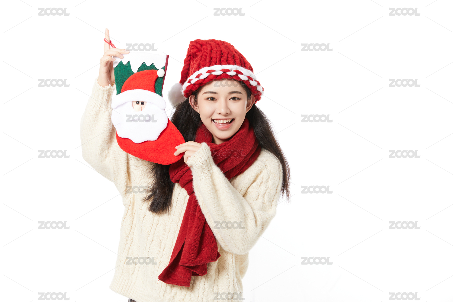 青年女性拿着圣诞袜笑容灿烂开心