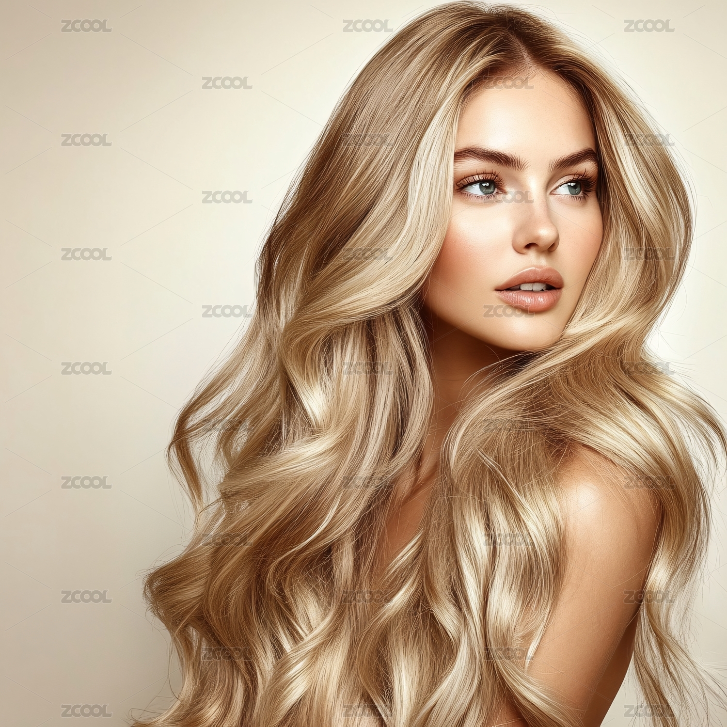 带着微笑的金色长发美妆广告模特头像
