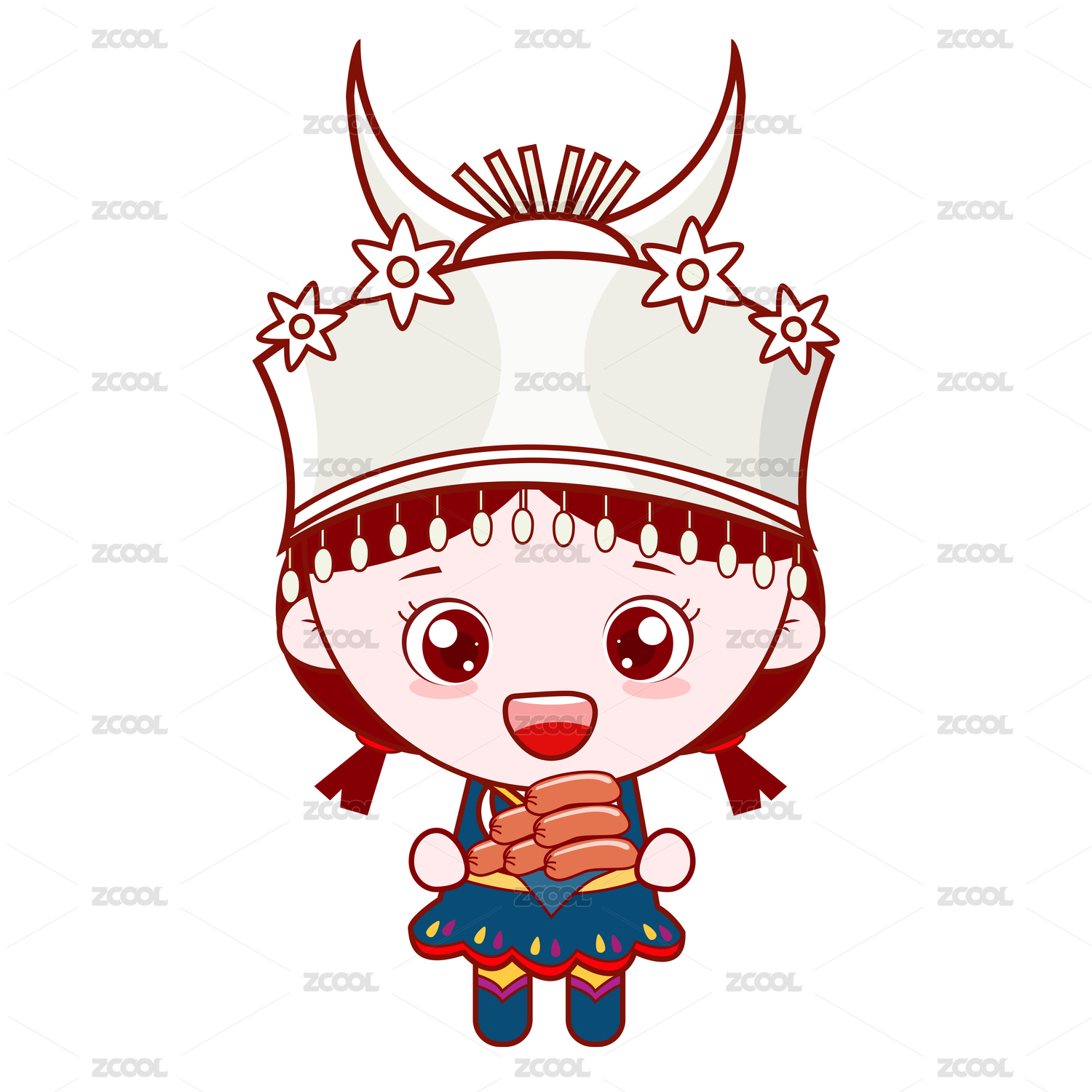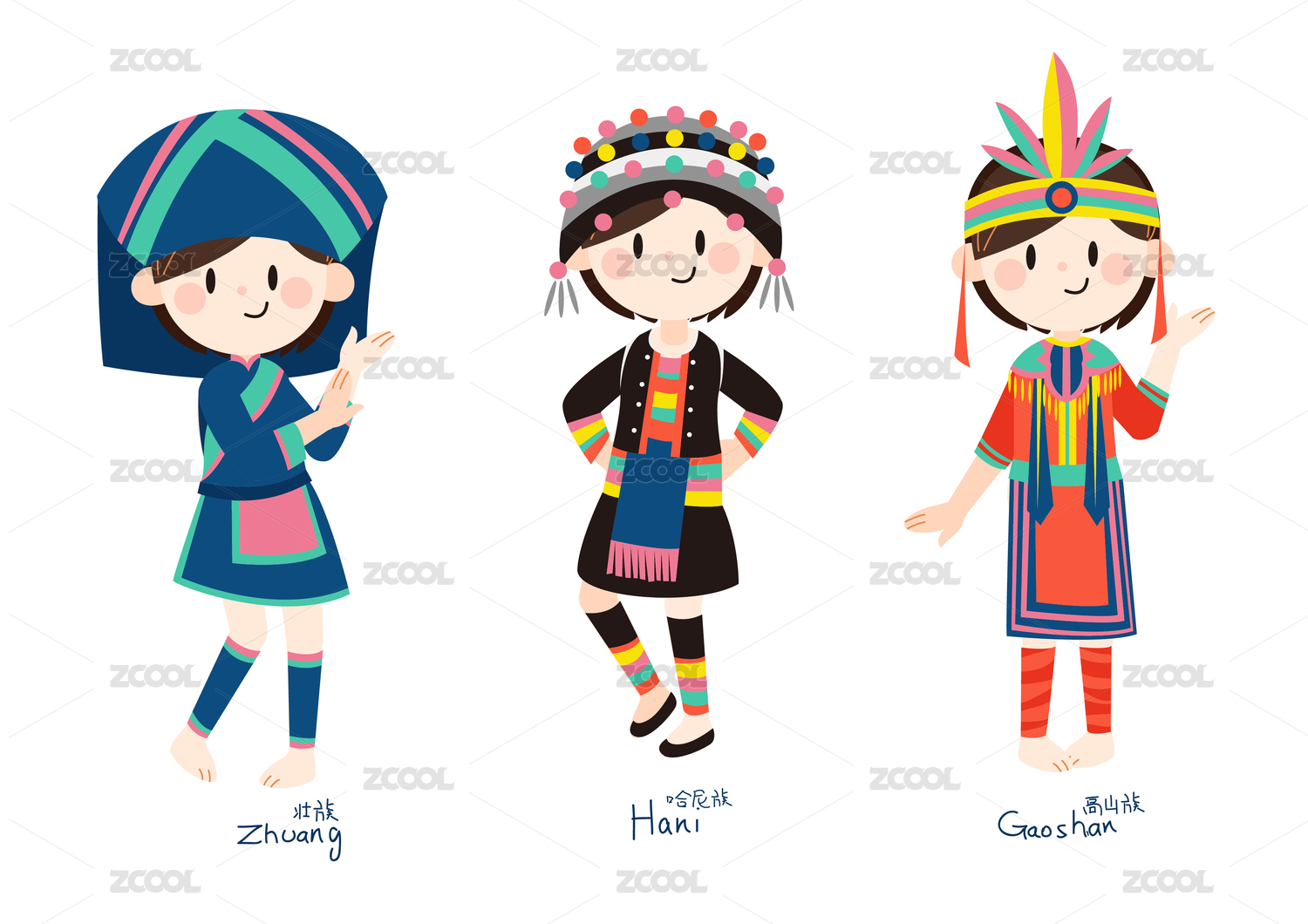 矢量少数民族少女壮族哈尼族高山族小数民族