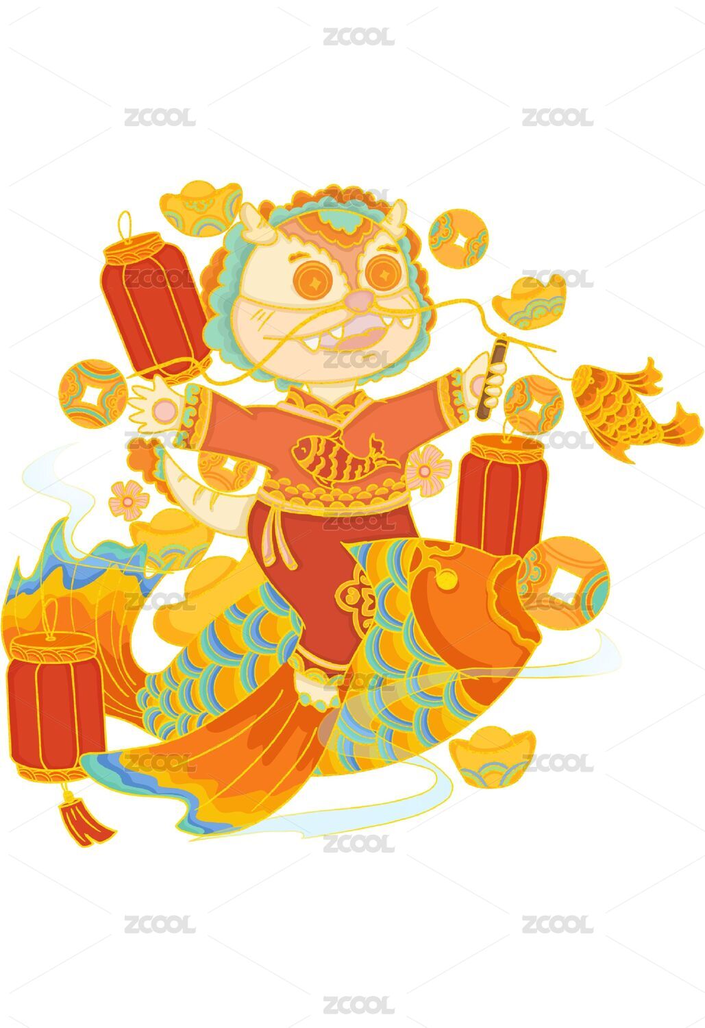 红色剪纸老鼠和财宝,十二生肖矢量插画
