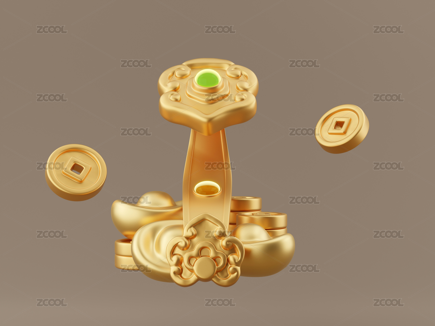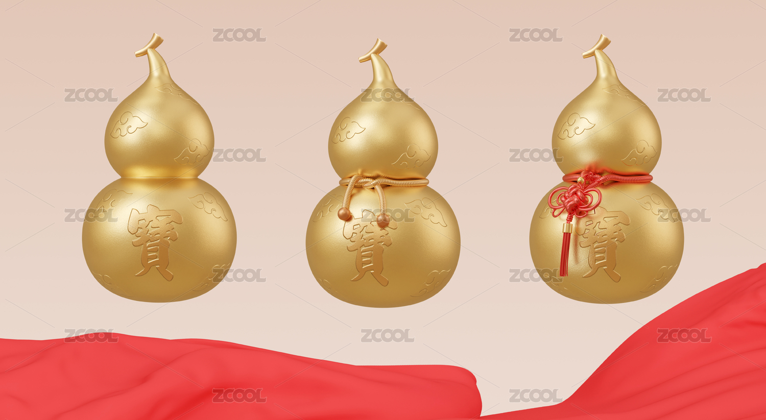 红色布纹背景吉祥如意宝字金色3D葫芦