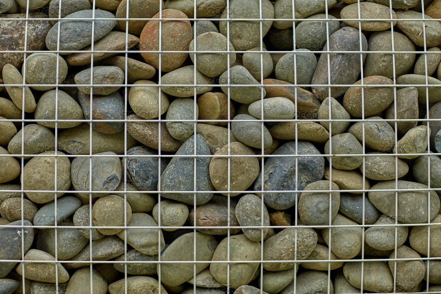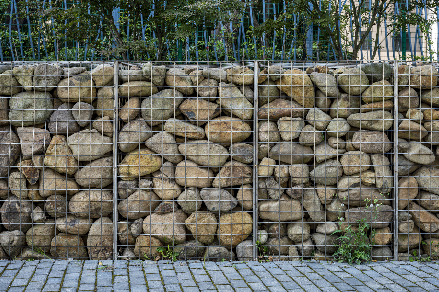城市公园的铁丝网鹅卵石围墙