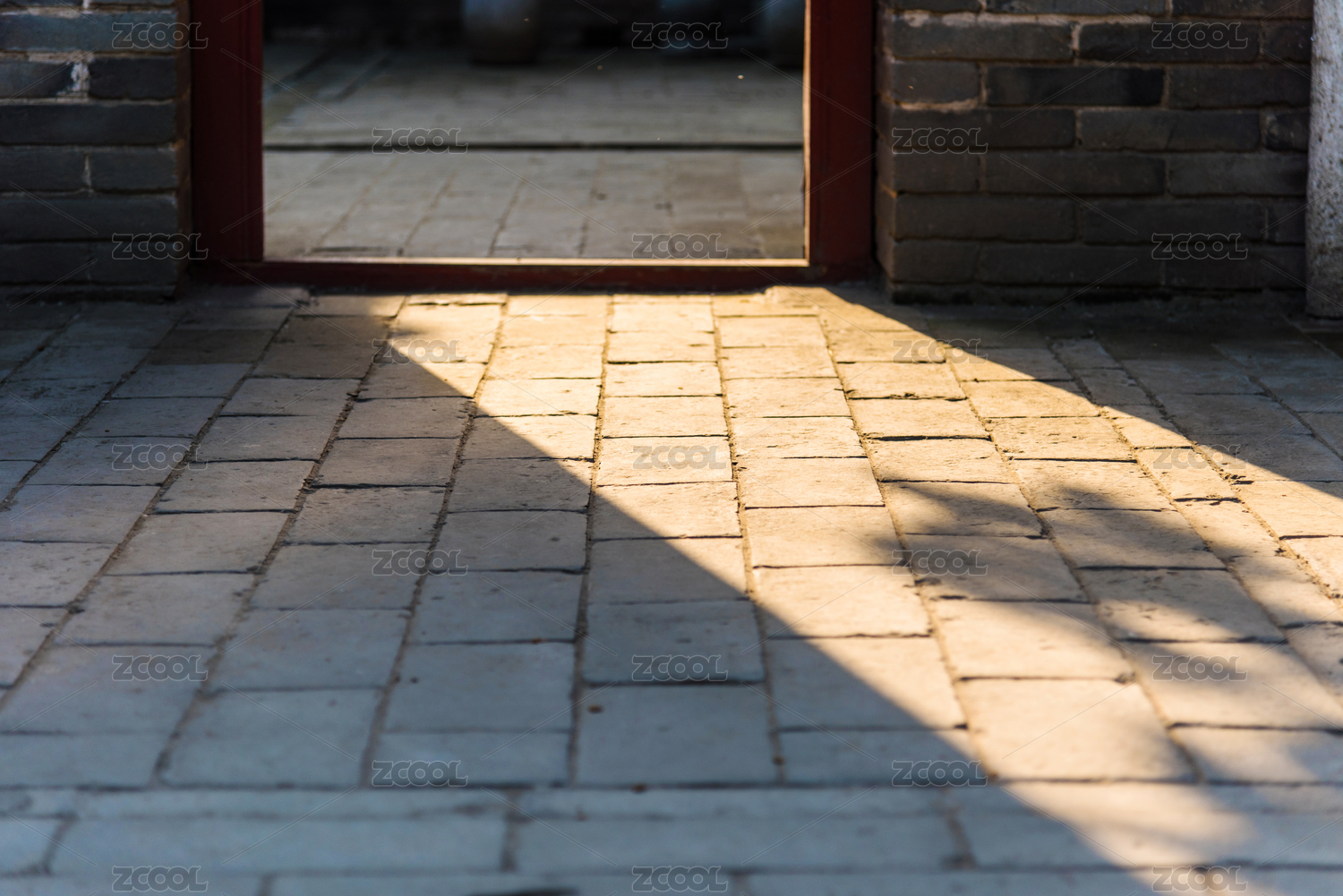 暖色的阳光通过门洒在地砖上