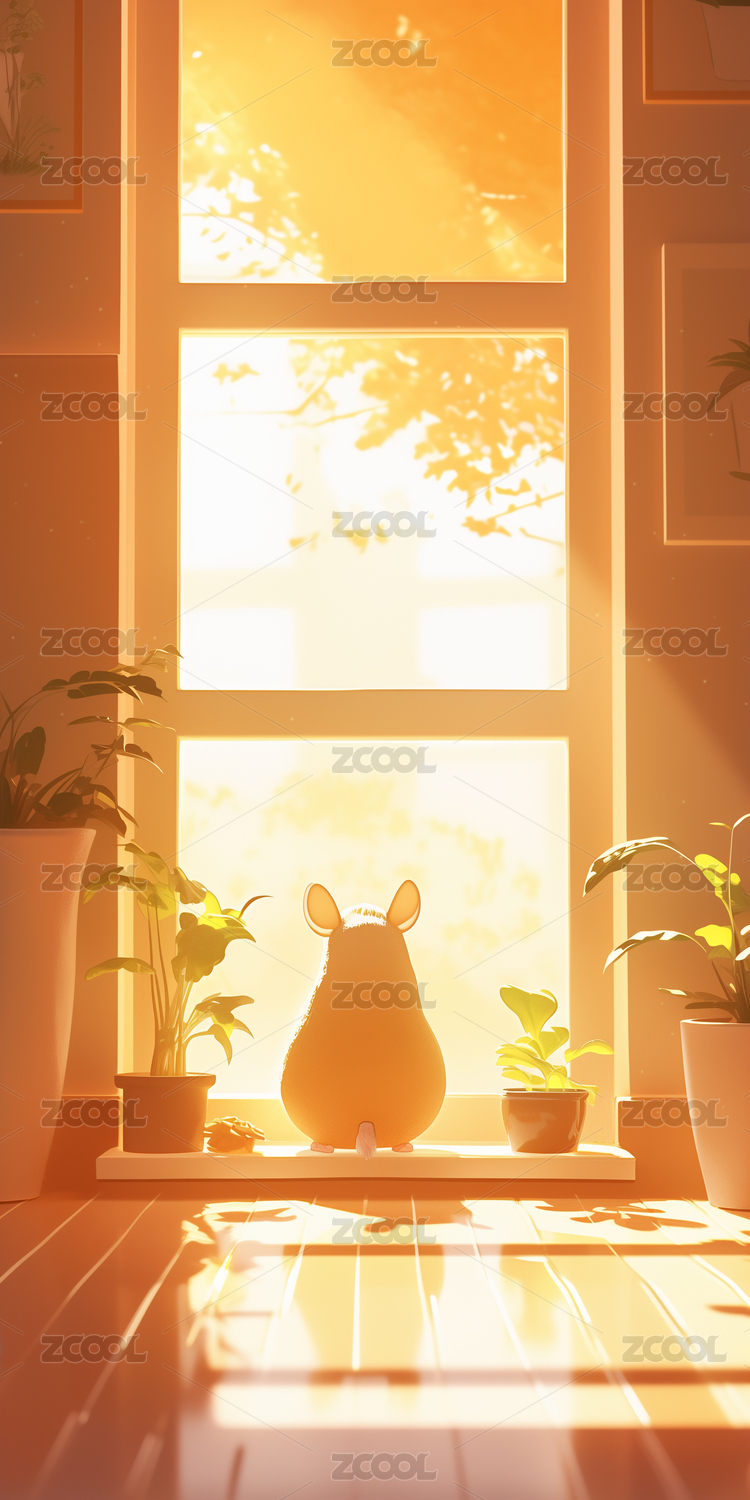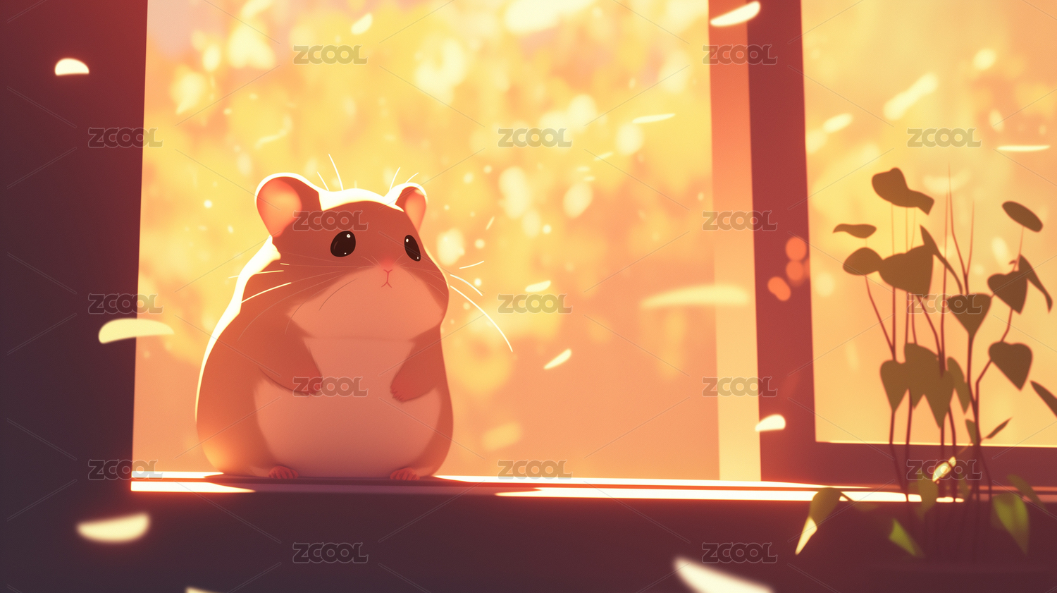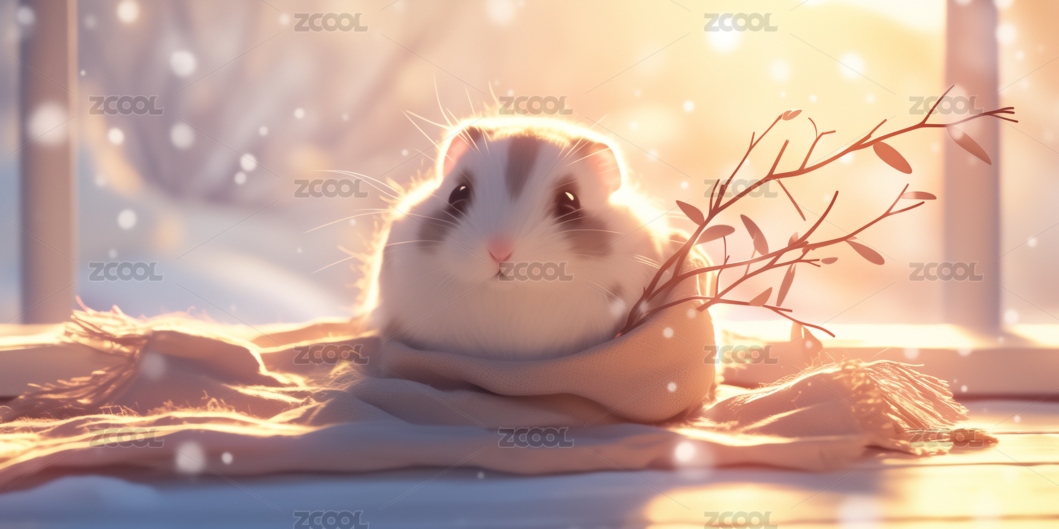 清新可爱家中晒太阳的胖毛丝鼠3D卡通