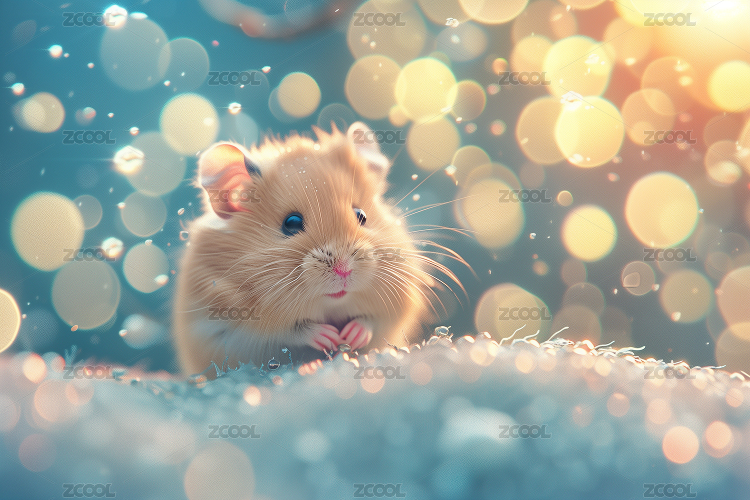 清新可爱田野里一只长胡须仓鼠3D卡通插画