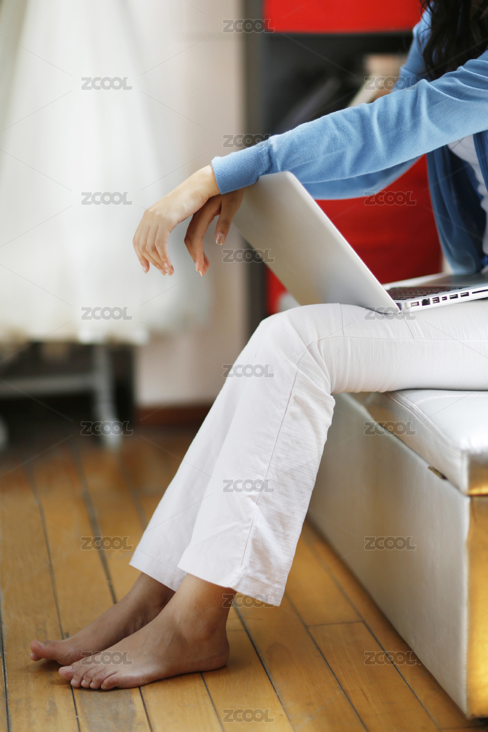 使用笔记本电脑时尚的年轻女子