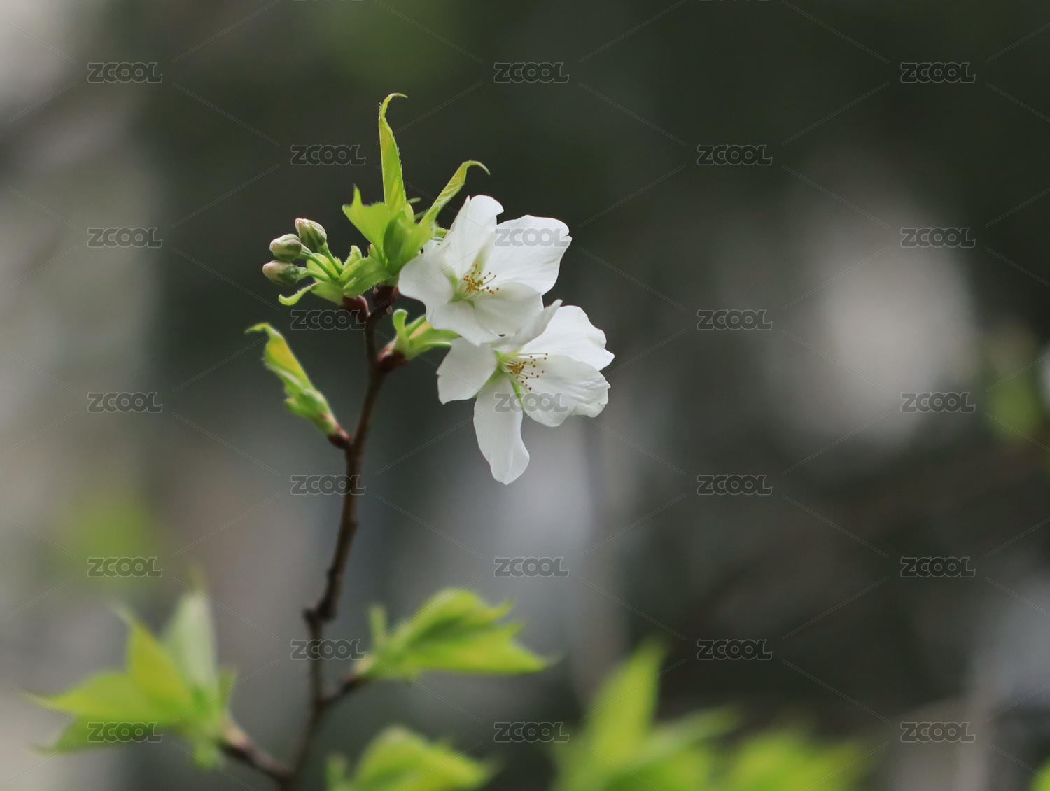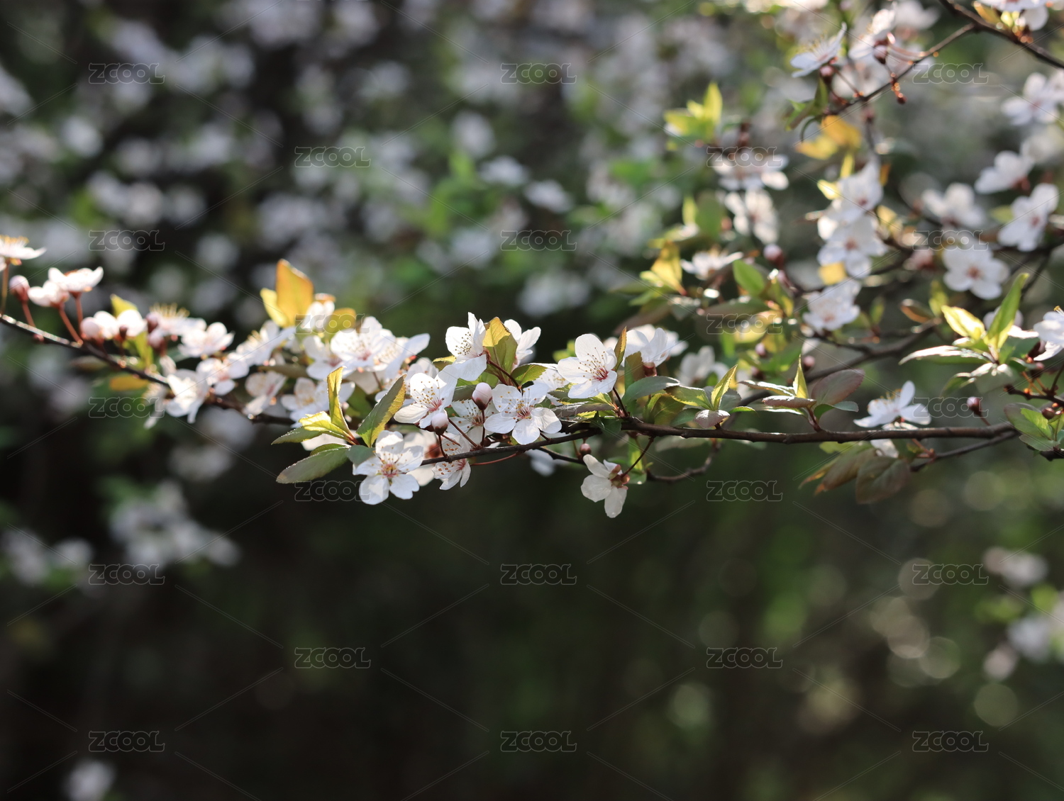 春天,一片盛开的白色花瓣的紫叶李