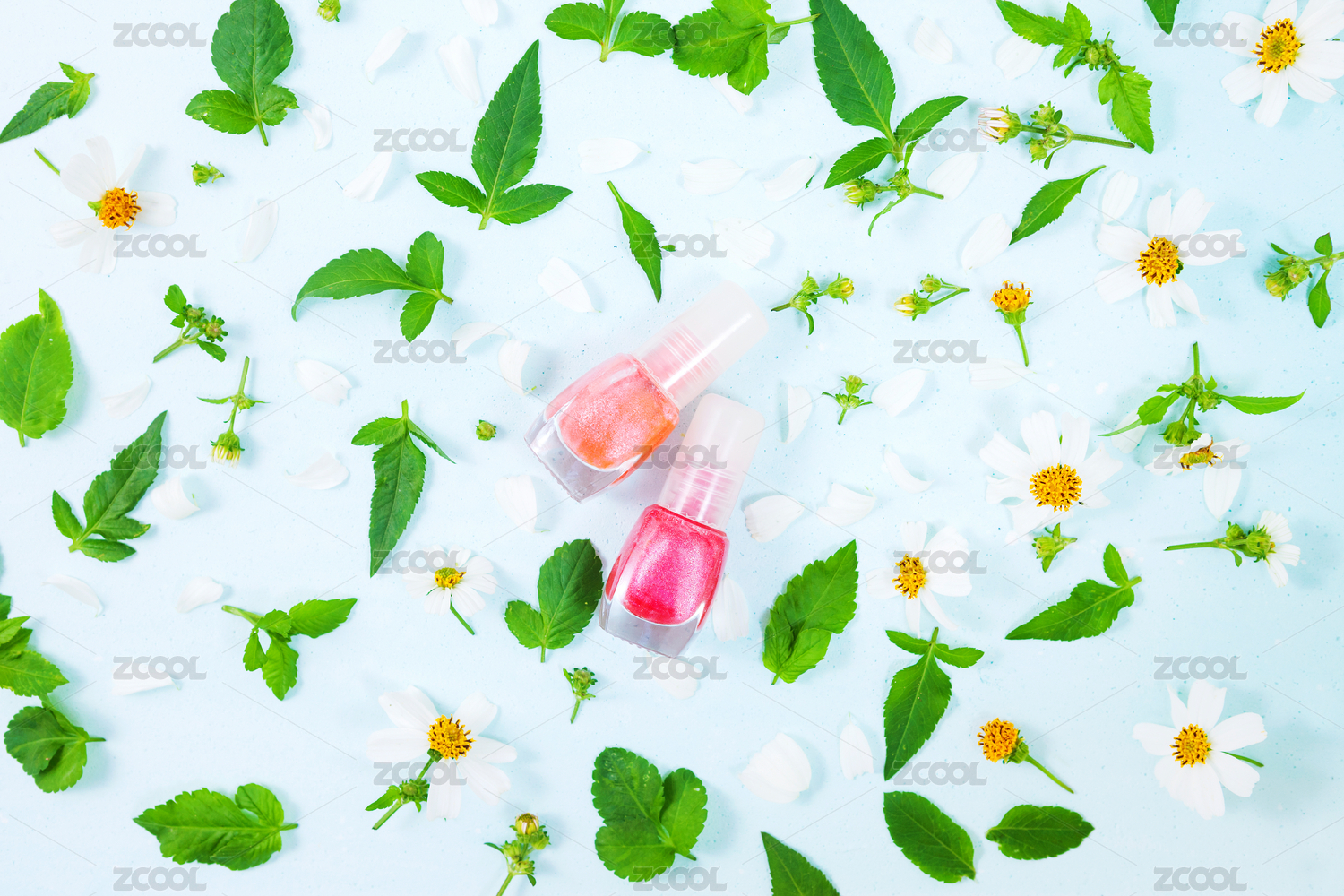 白色花瓣背景上的指甲油