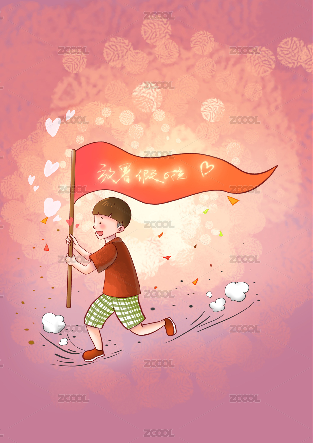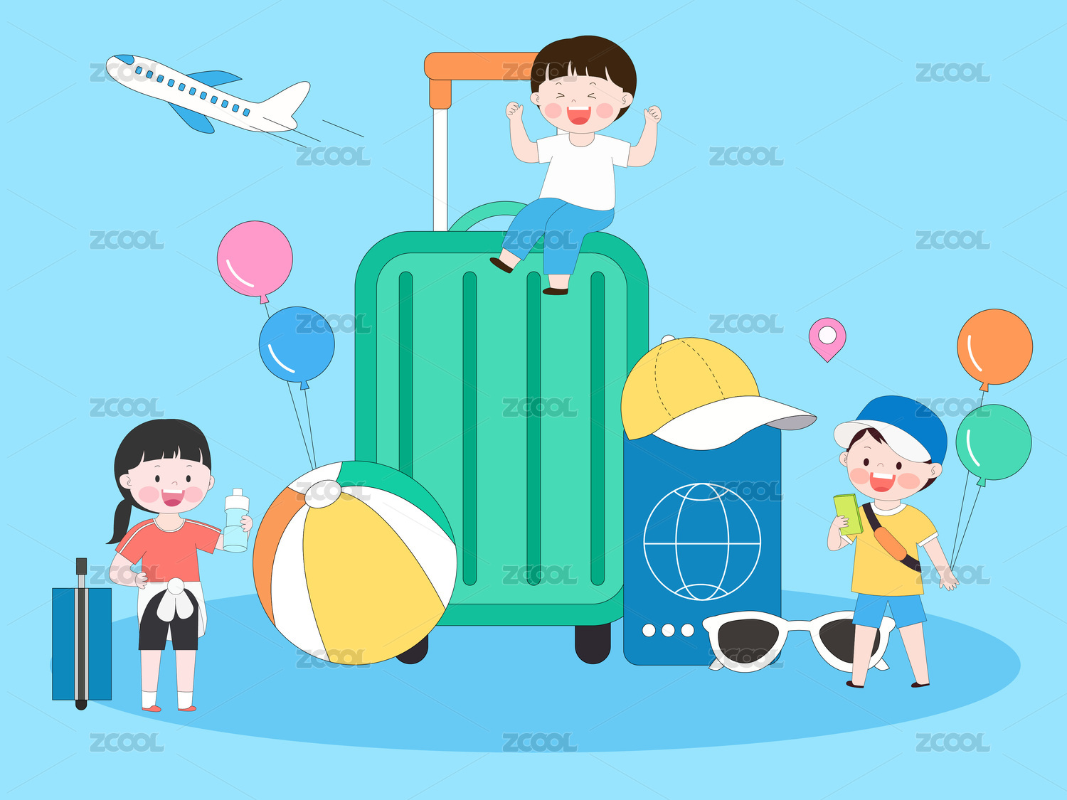 儿童节暑假放假休闲度假海边旅游游乐园插画
