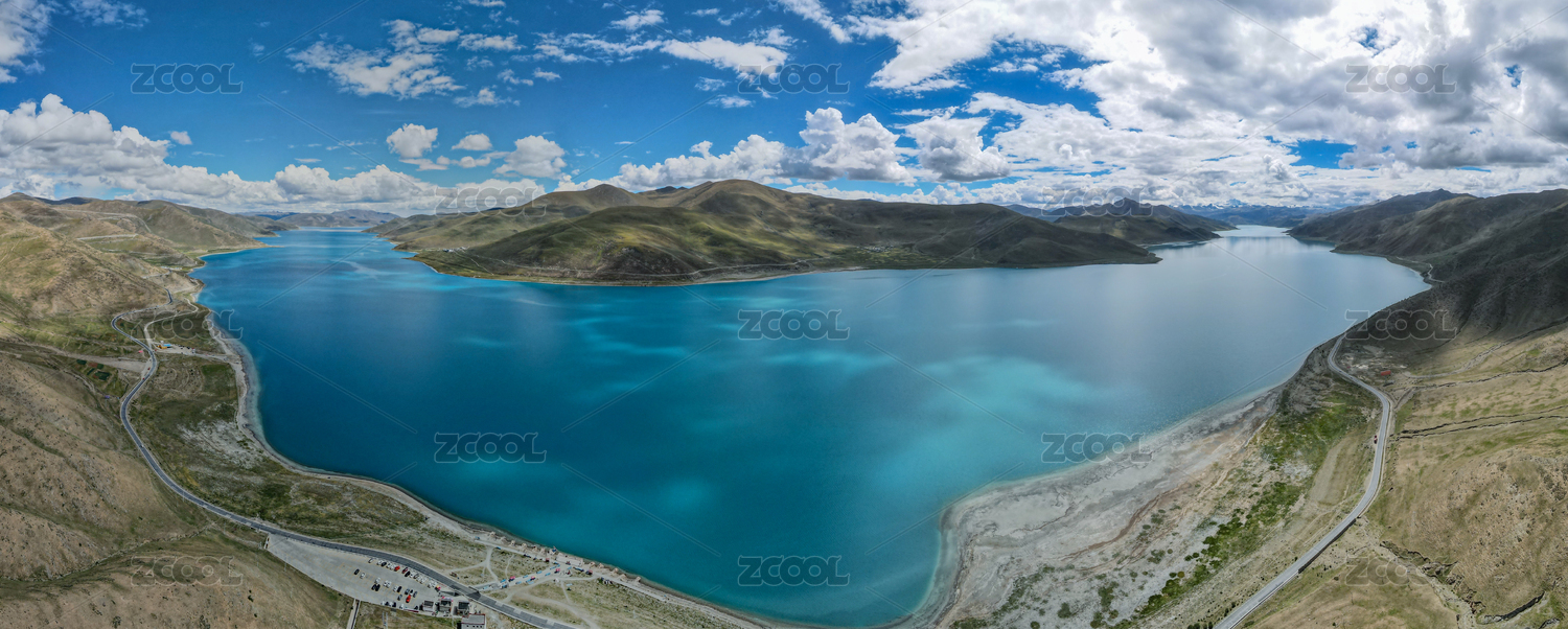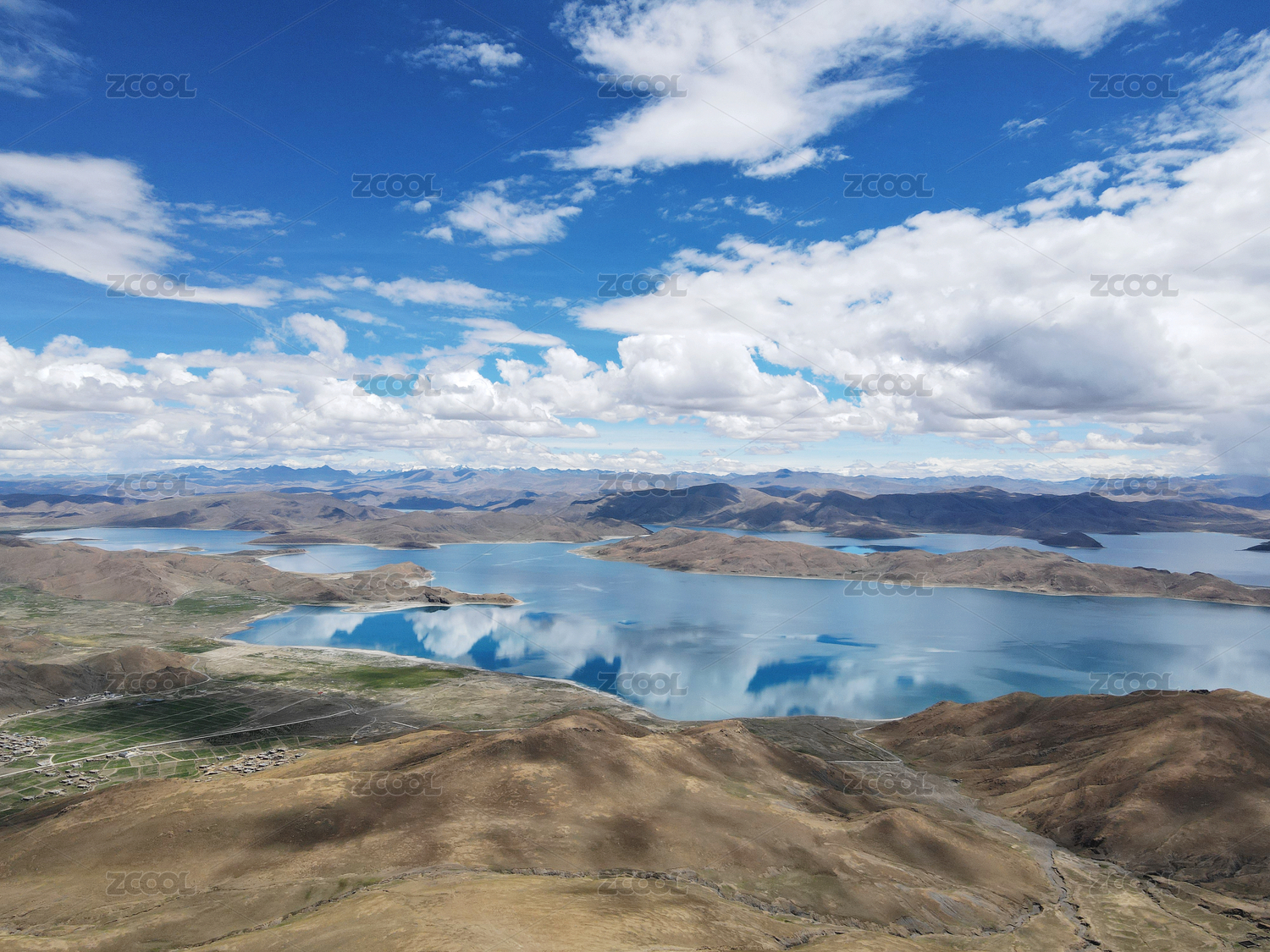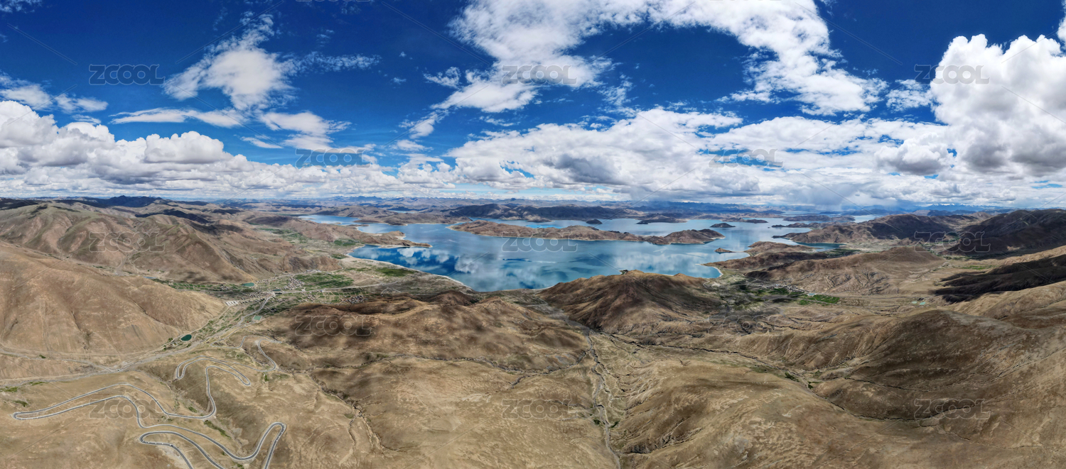 中国西藏观景台全景航拍羊卓雍措千岛之湖