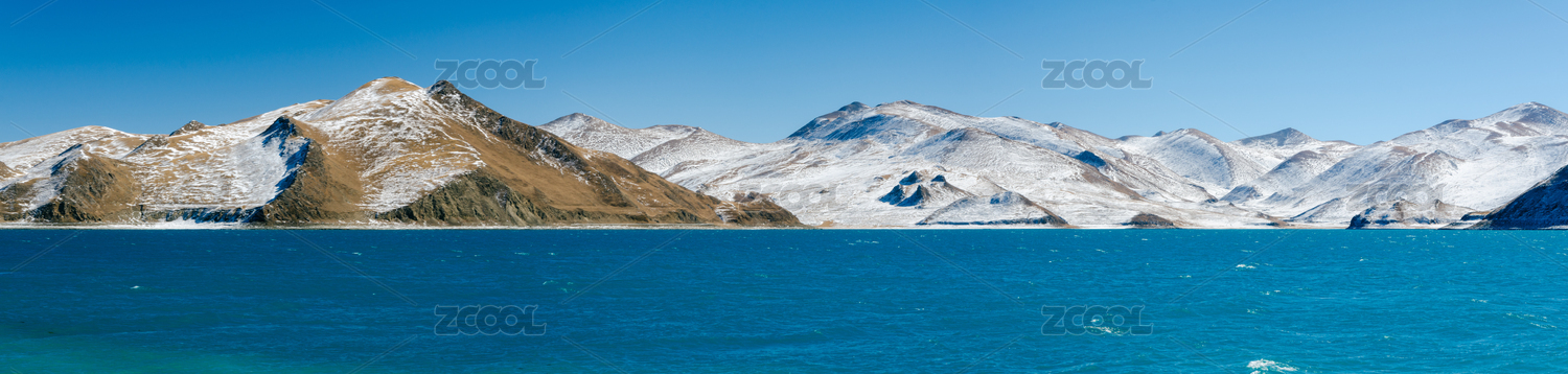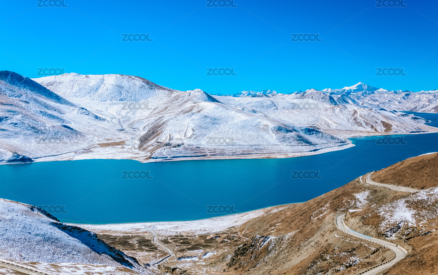 中国西藏山南羊卓雍措冬季雪景自然全景风光