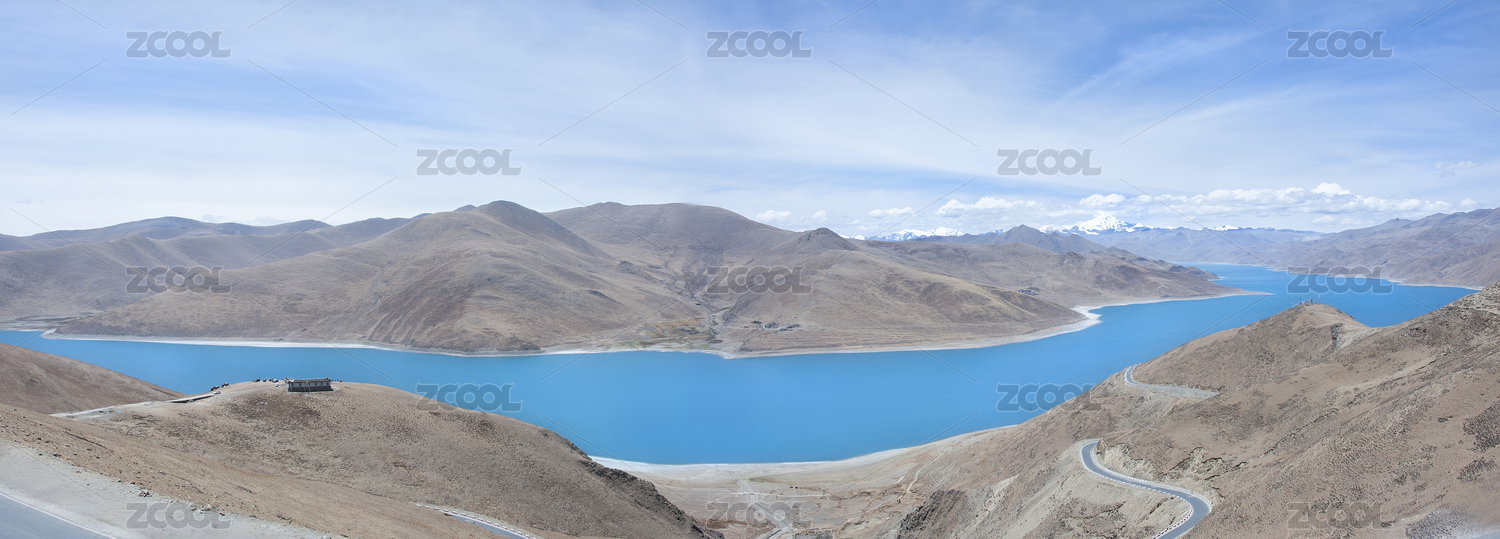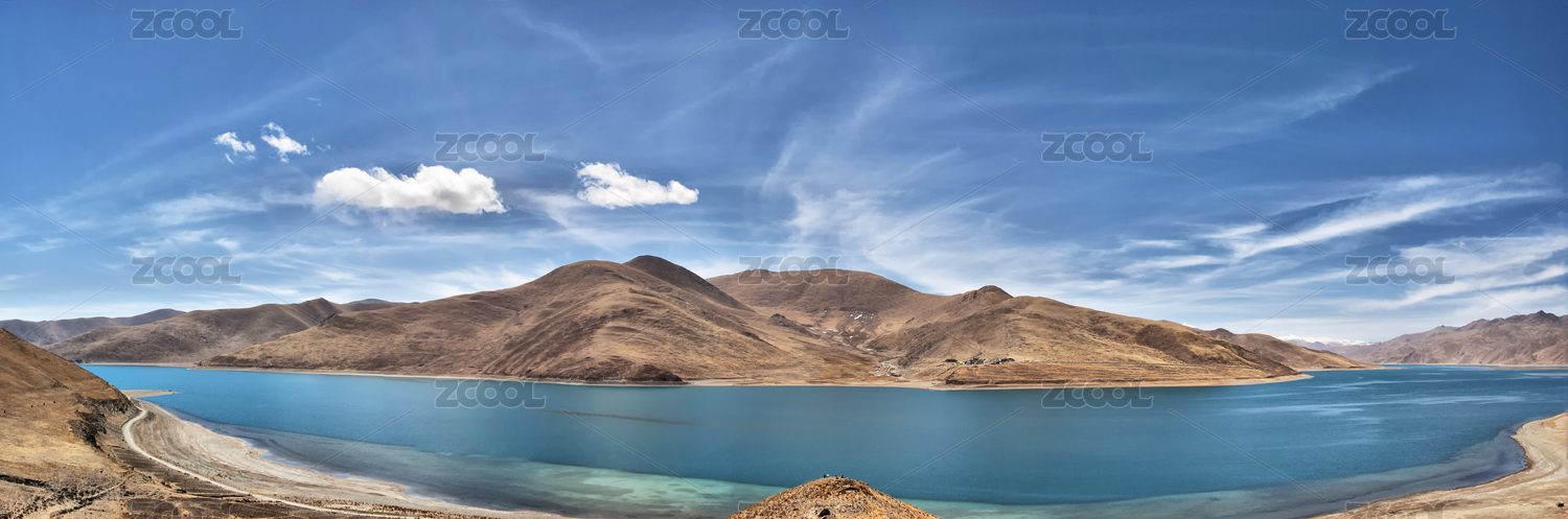 中国西藏山南市浪卡子县羊卓雍措羊湖全景