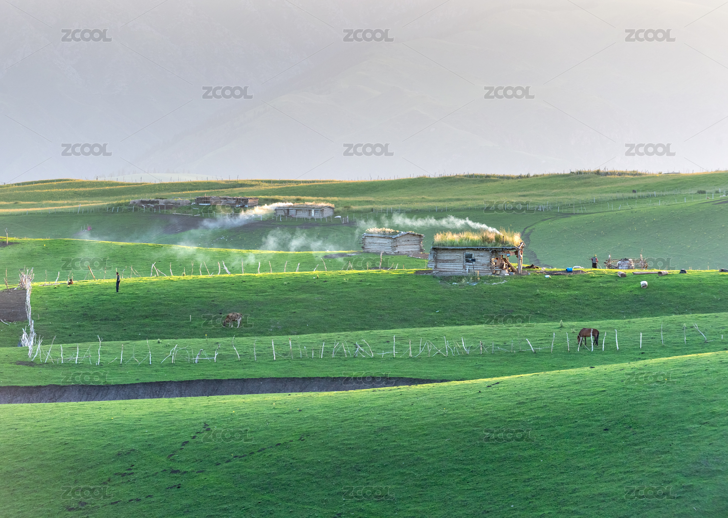 中国新疆哈密东天山草原沙漠畜牧业羊马自