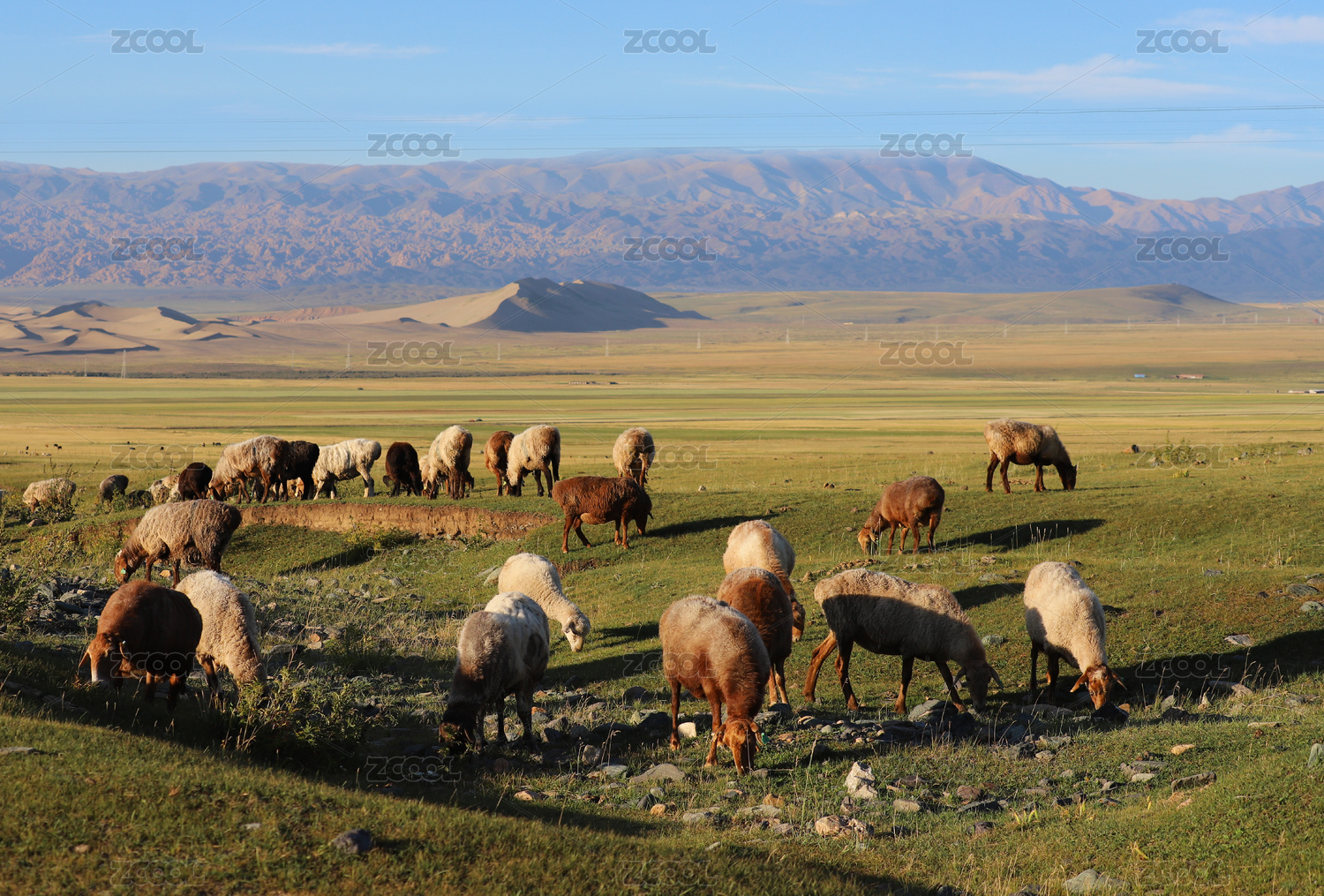 中国新疆哈密东天山鸣沙山草原沙漠畜牧业