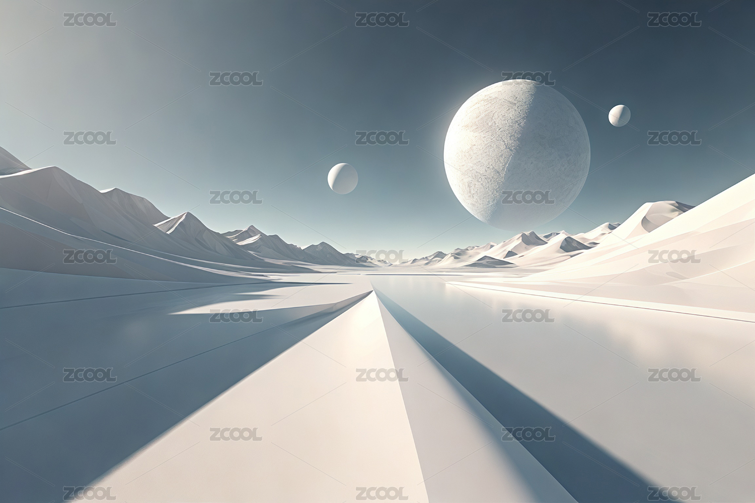 白色简洁明亮的层层山峰与倒影人造空间背景