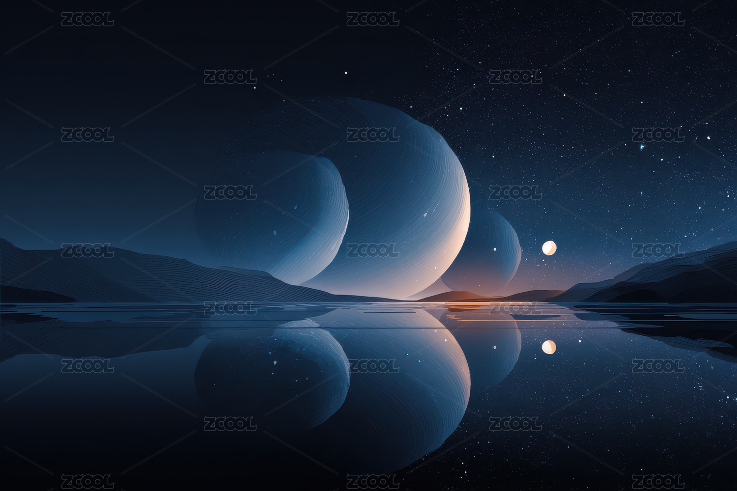 科幻星球夜晚倒影美景