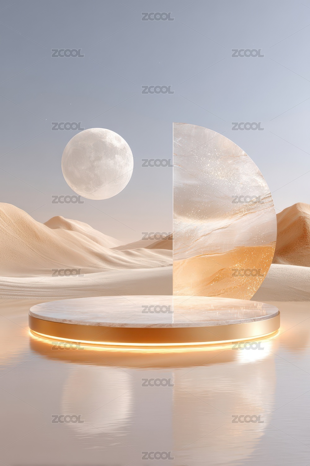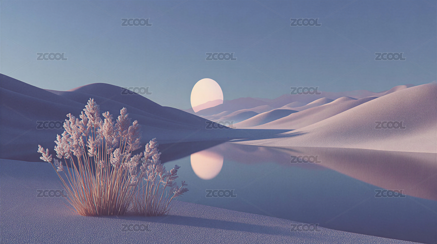 沙漠月夜静谧湖景