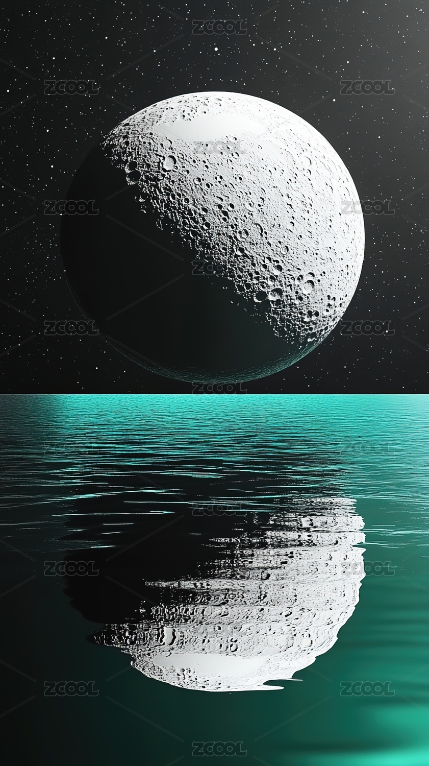 月球与星河在水面的梦幻倒影