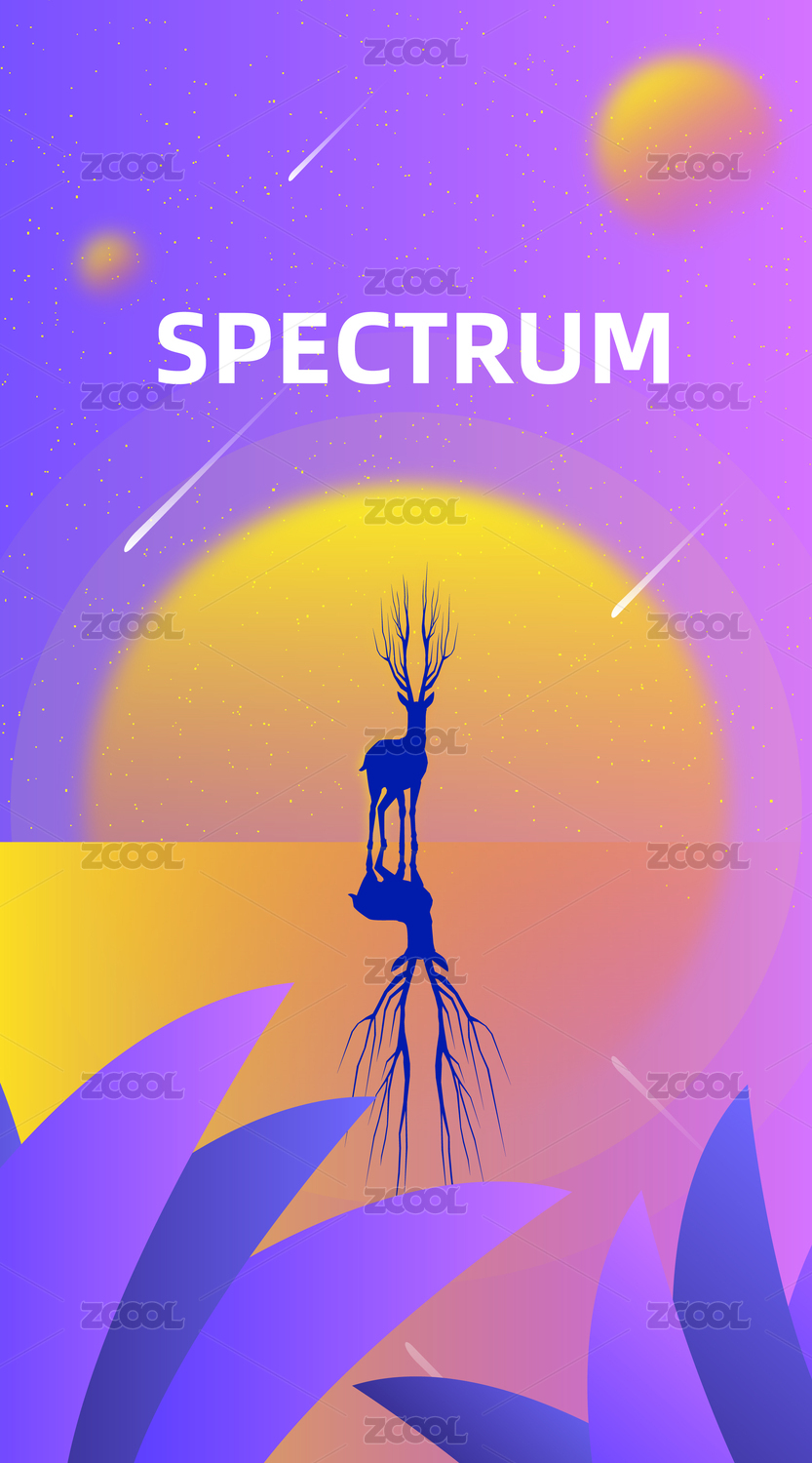 月亮下逆光的鹿剪影