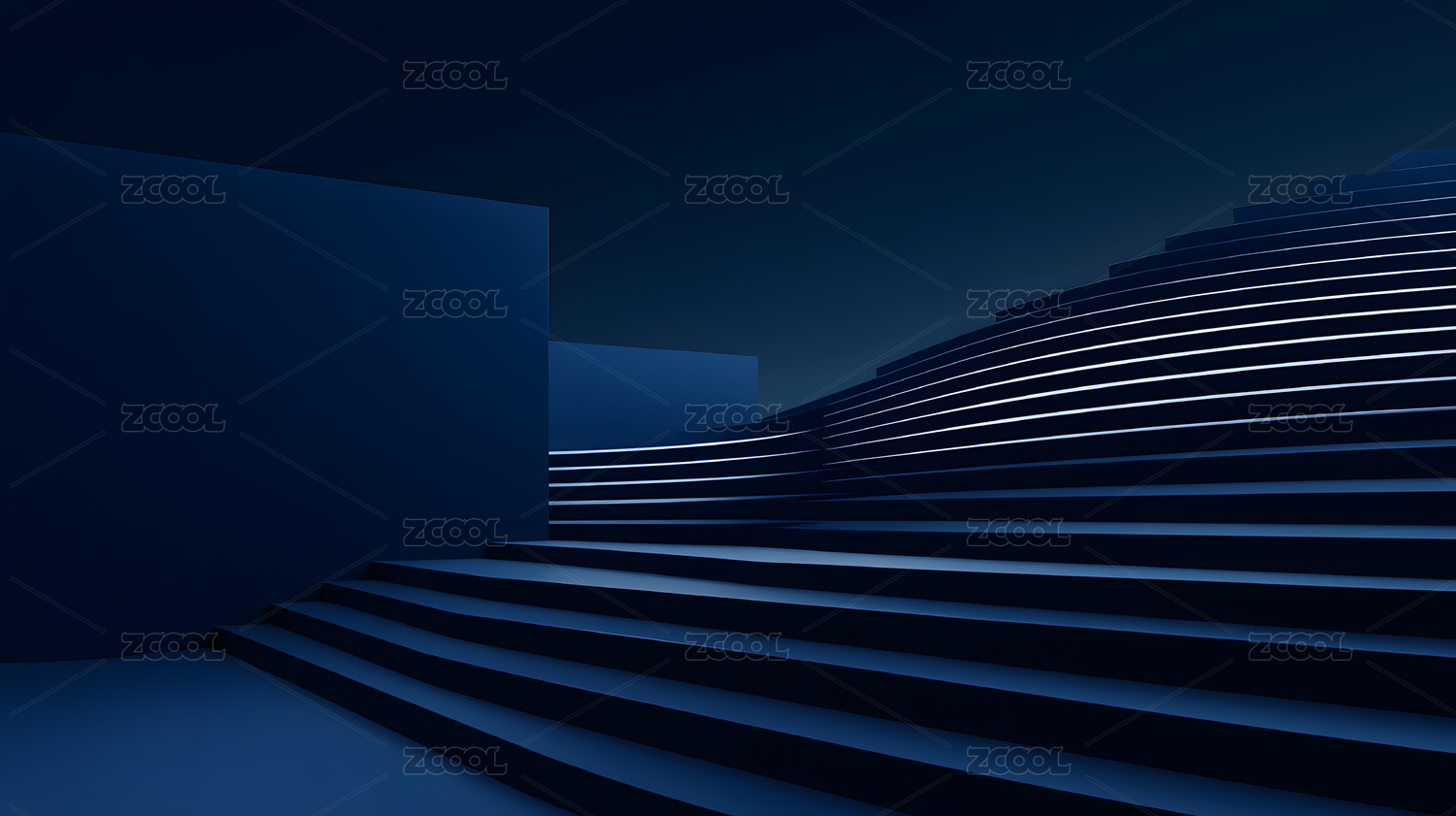 蓝色阶梯光影空间三维结构
